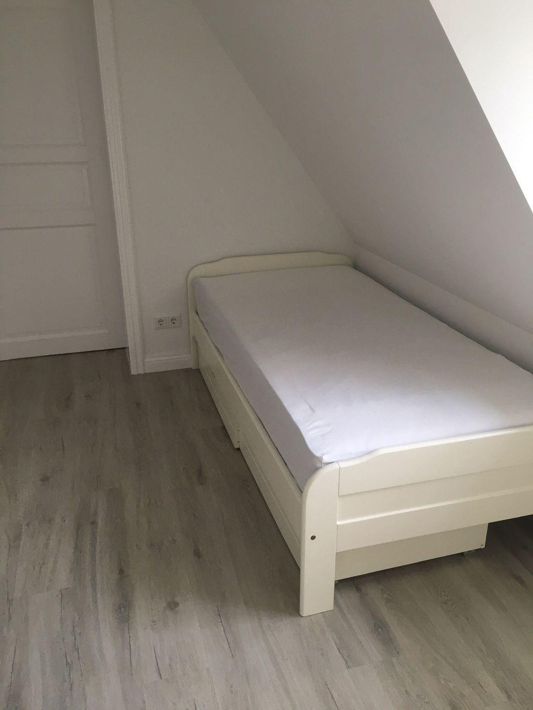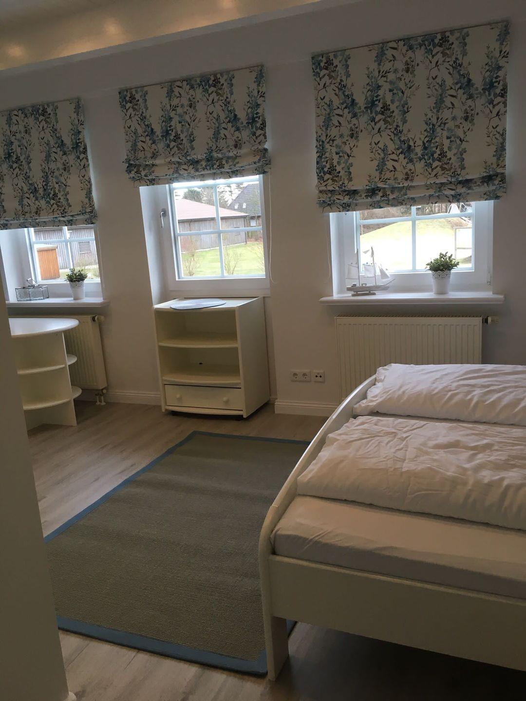 Über die Treppe gelangen Sie in das 1. Obergeschoss mit den drei Schlafzimmern. Eins davon ist mit zwei Einzelbetten und eins mit einem Doppelbett ausgestattet. Das dritte Schlafzimmer verfügt über ein Einzelbettzimmer und ist gleichzeitig das Durchgangszimmer zum Doppelzimmer.