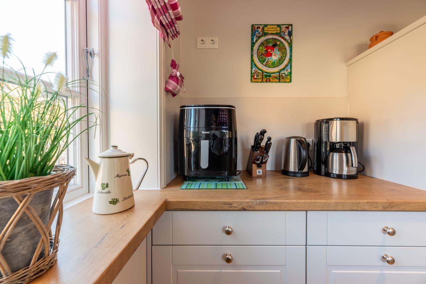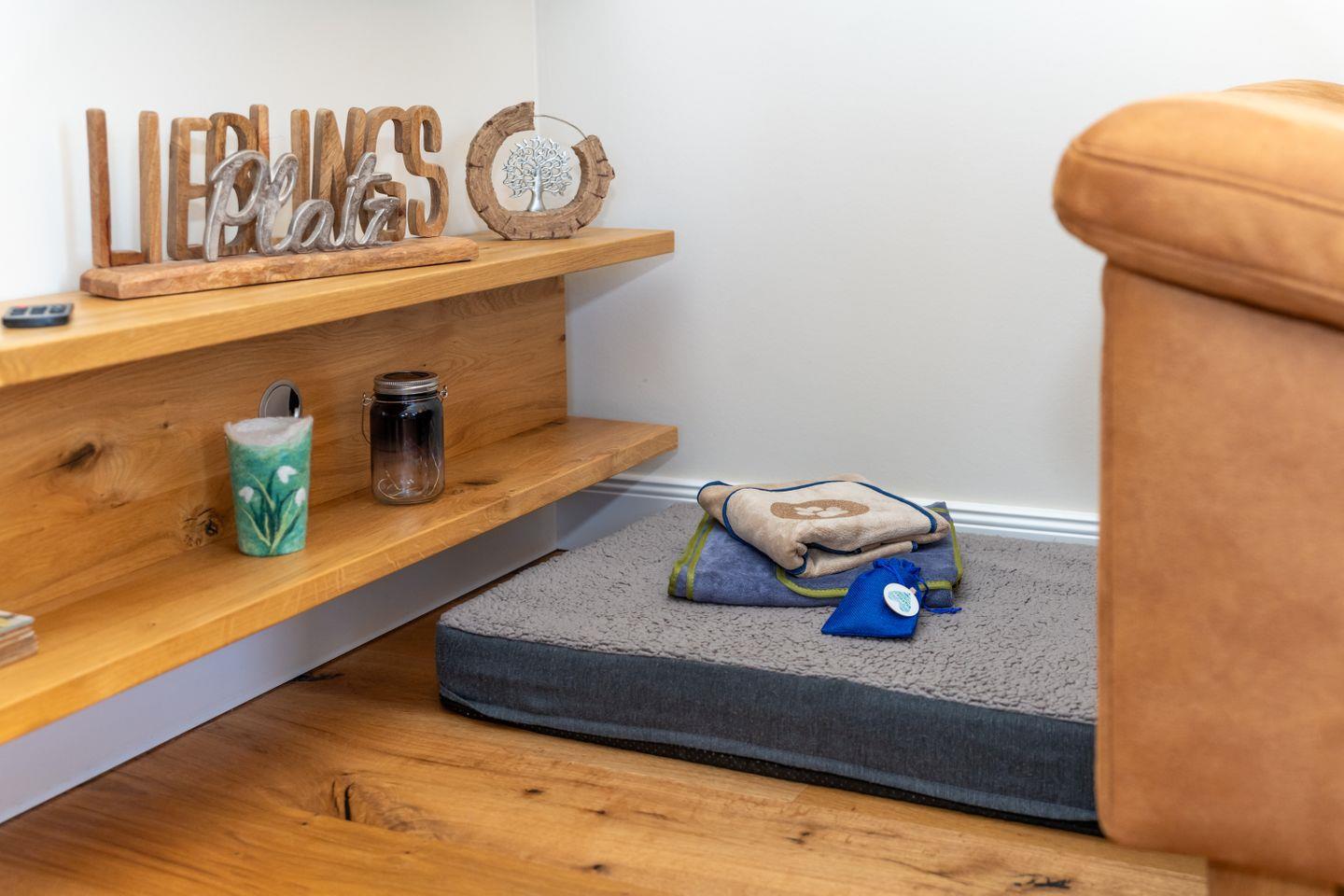 Genießen Sie einen exklusiven Urlaub unter Reet, der zahlreiche kostenlose Annehmlichkeiten bietet, darunter: eine voll ausgestattete Küche mit einem Neff Backofen und eine Heißluftfritteuse mit Dampfgarer, einen Strandkorb direkt am Objekt, einen Strandkorb am Hundestrand sowie einen weiteren am hundefreien Strand in Utersum. Zudem steht Ihnen ein umzäunter Garten zur Verfügung mit einer Fahrradgarage sowie die Nutzung der Sauna, inklusive Bademantel und Saunalaken. Eine Waschmaschine ist ebenfalls vorhanden. Für Familien mit Kindern bieten wir Artikel wie ein Reisebett, einen Hochstuhl und einen Treppenschutz an. Für Ihre vierbeinigen Begleiter gibt es Leckerlis, ein Handtuch und ein Hundekissen. Darüber hinaus erwartet Sie ein umfangreiches Willkommenspaket.