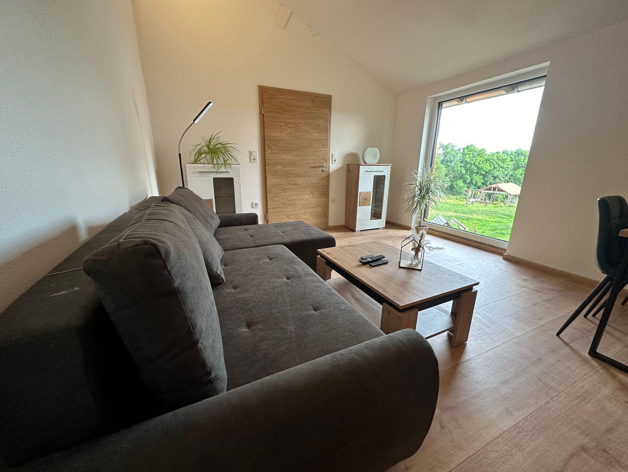Der geräumige Wohn- und Essbereich beeindruckt mit einer 4 Meter hohen Decke und originalen Holzbalken, die der Wohnung ihren besonderen Charakter verleihen. Die großen Fenster bieten einen wundervollen Blick ins Grüne, der zur Entspannung einlädt. Die liebevoll durchdachte Einrichtung sorgt dafür, dass sich unser Gast von der ersten Minute an wie zu Hause fühlt.