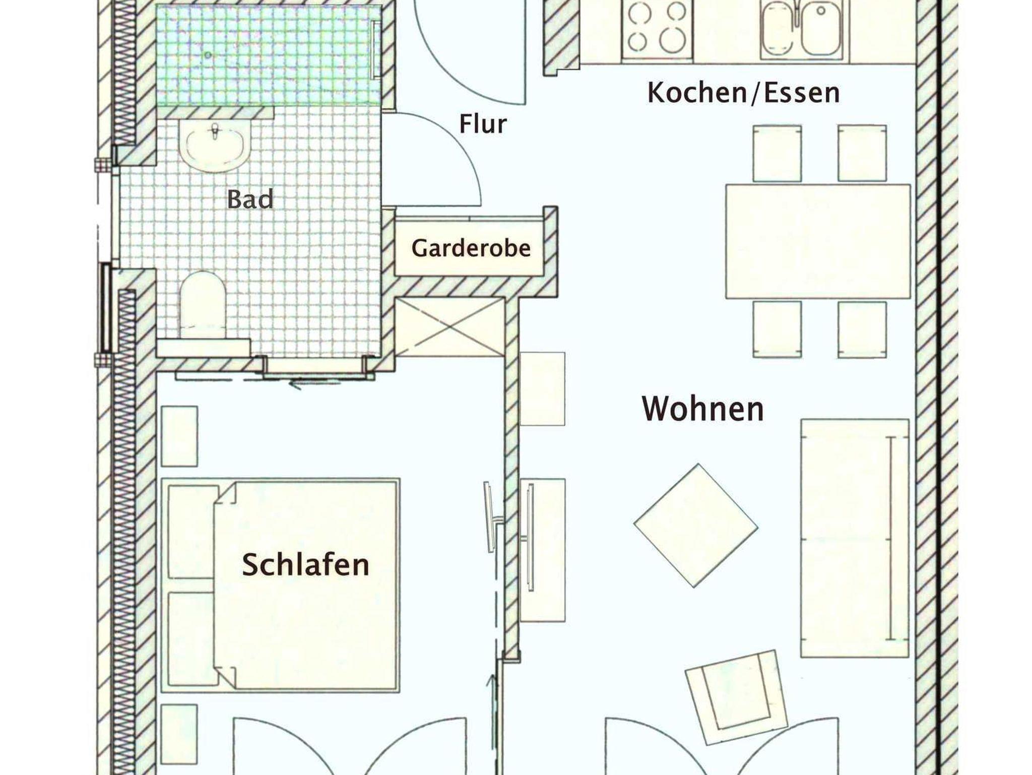 Genießen Sie den Komfort in der hochwertig und modern eingerichteten Friesland Oase: Im kombinierten Wohn- und Essbereich finden Sie eine voll ausgestattete und mit neuesten Geräten eingerichtete Küchenzeile. Der klar gehaltene Stil der gesamten Einrichtung wird durch Accessoires in heiteren Farben ergänzt. Sowohl im Wohnbereich als auch im Schlafzimmer ist ein Flat-TV vorhanden. Die überdachte Westterrasse ist von beiden Räumen aus zugänglich. Das helle Bad mit Fenster, Internet-Radio und begehbarer Sommerregendusche kann vom Schlafzimmer und vom Eingangsbereich aus betreten werden.