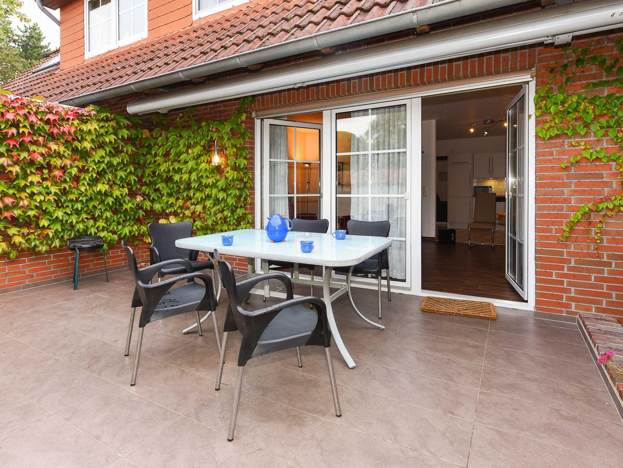Die große tolle Terrasse rundet die Sache für Sie und Ihren Urlaub ab. Sie werden das Frühstück oder die Abende auf der Terrasse besonders genießen, dass ist mal sicher! Hinter dem Haus befindet sich noch ein extra Grundstück mit freiem Blick auf Deich und Wiesen.