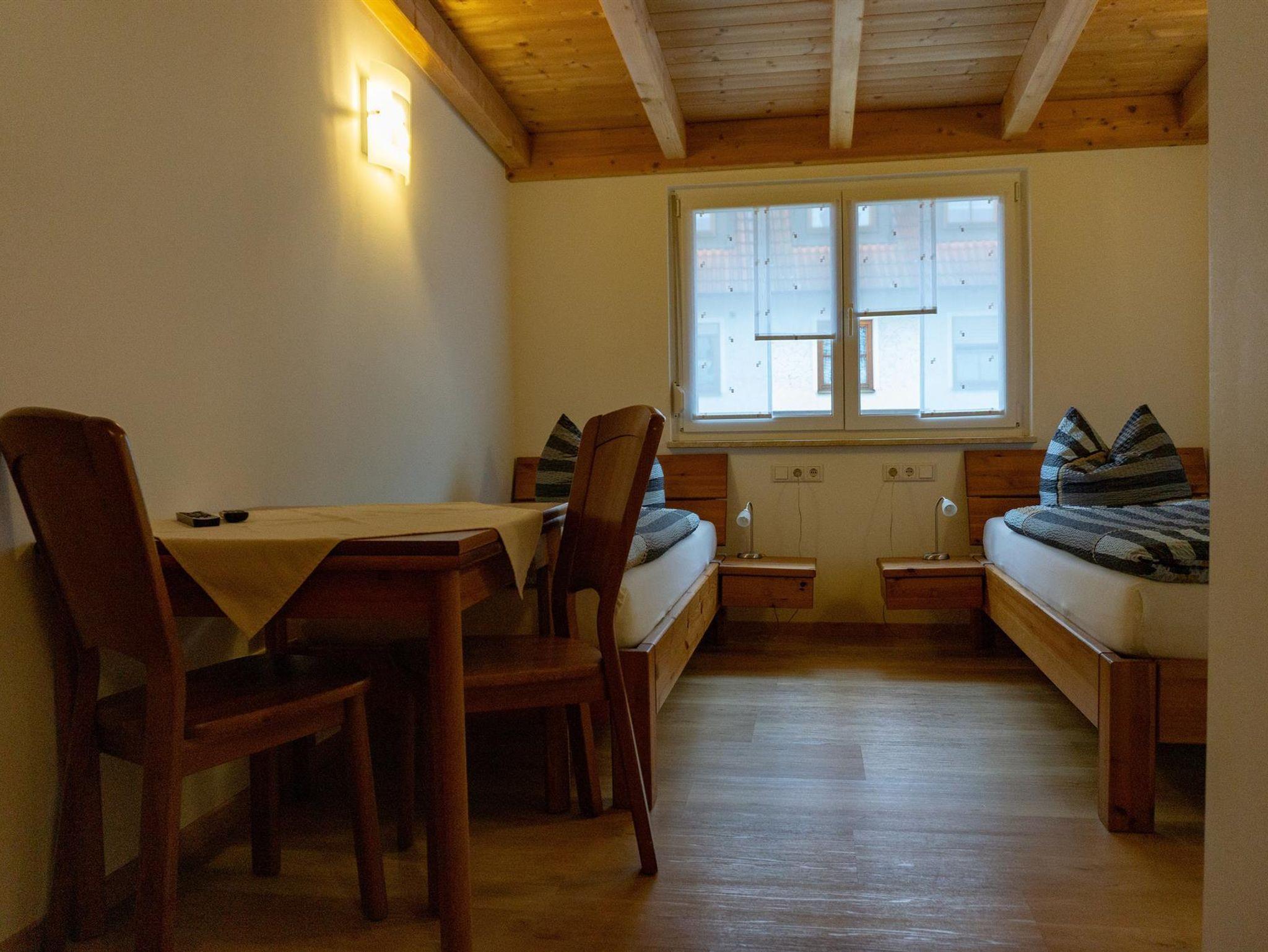 Unser gemütliches Doppelzimmer im Nebenhaus bietet Platz für 1-2 Personen. Das moderne Schlafzimmer im „Holz Stil“ mit 2 getrennten Einzelbetten (auch Doppelbett möglich) lädt zum Verweilen ein. Das geräumige Badezimmer mit Dusche, WC und Handtüchern rundet das Gesamtbild ab. Alle unserer Doppelzimmer sind mit TV und WLAN ausgestattet. Im Erdgeschoss gibt es eine kleine Gemeinschaftsküche mit Sitzgelegenheiten und Kaffeeautomat.