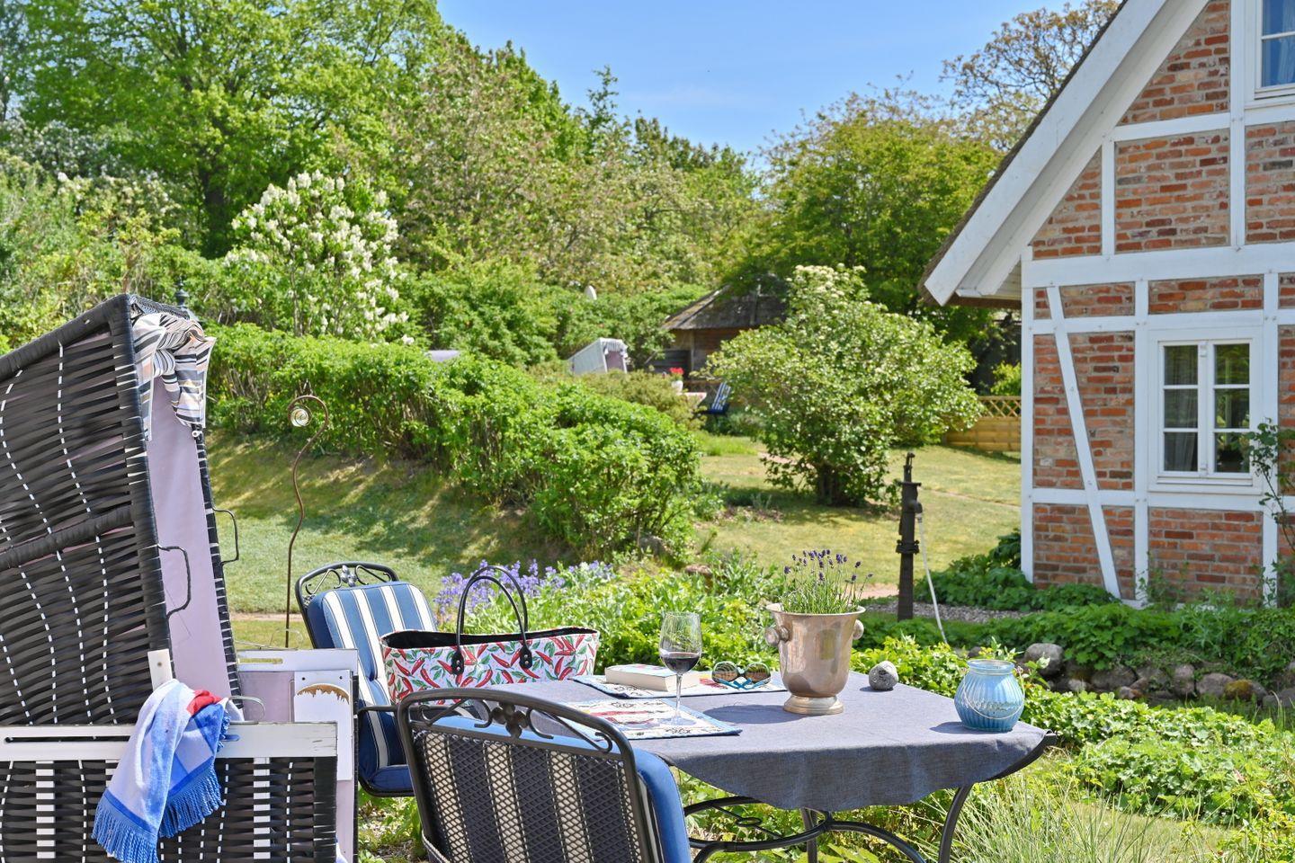 Im eigenen Strandkorb auf der gemütlichen Terrasse mit herrlichem Blick in den Garten und auf die umliegende ruhige Landschaft können Sie die Seele baumeln lassen und vom Alltag ausspannen. In der Nähe des Hauses können Sie wunderschön wandern, Rad fahren und die traumhafte Natur genießen.