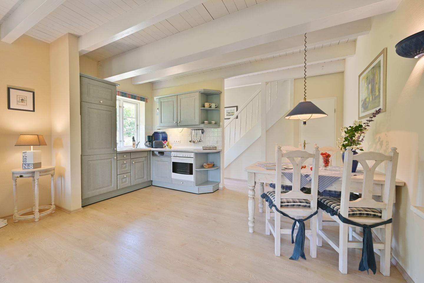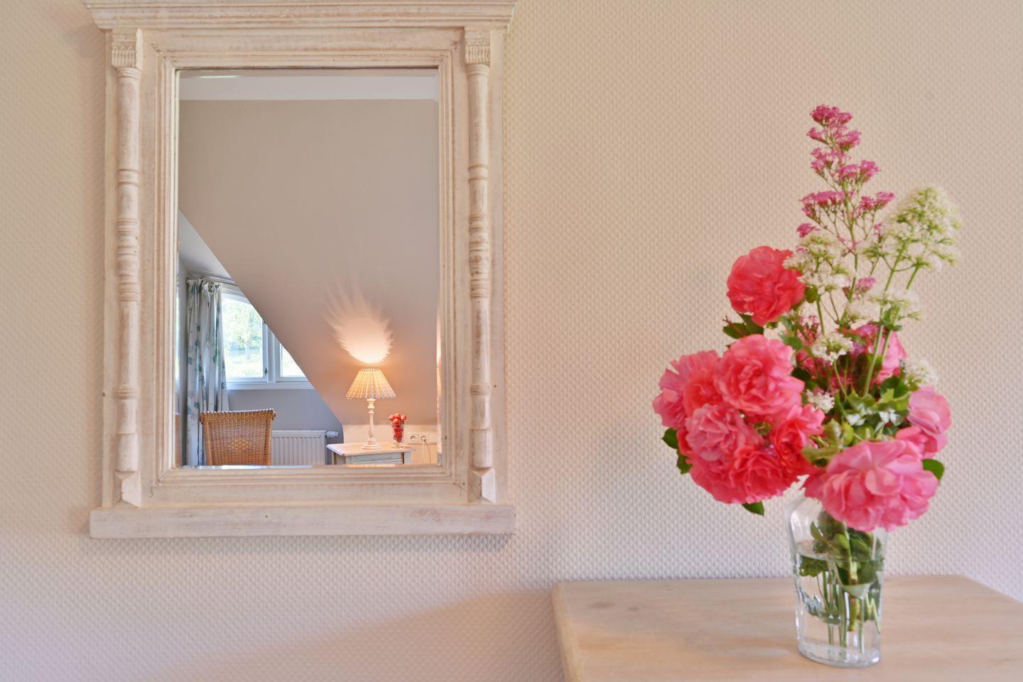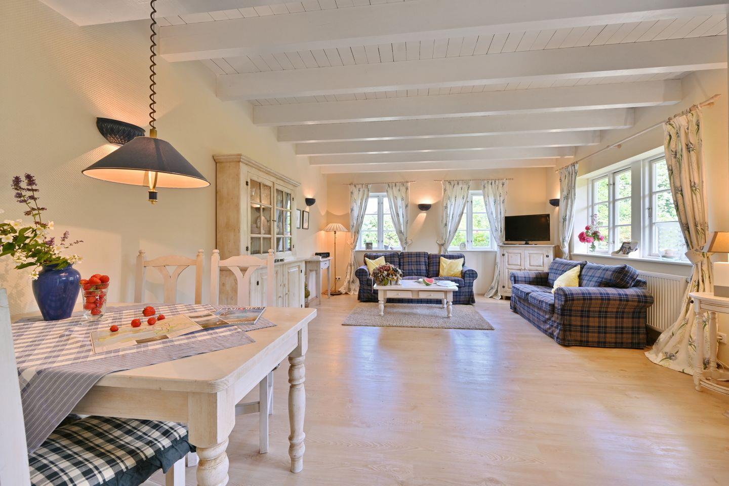 Die Ferienwohnung ist farblich aufeinander abgestimmt und mit viel Liebe zum Detail im Landhausstil eingerichtet.