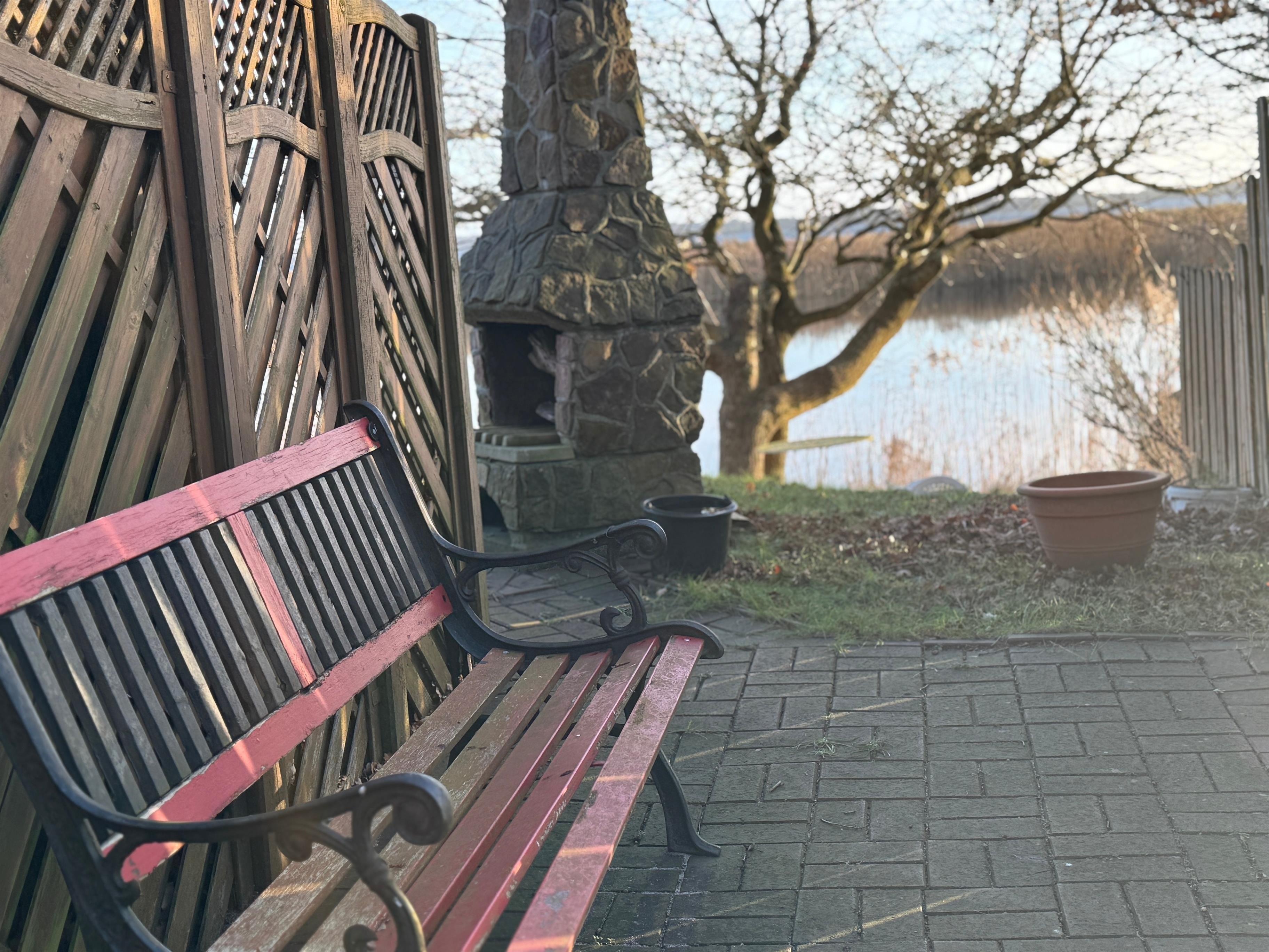 Der Waldweg ist ein ruhiger Weg ohne Durchgangsverkehr, direkt am Wald mit direktem Zugang zu wunderschönen Wanderwegen rund um Felder und Seen. Das Haus steht an einem Strandsee, in dem man schwimmen kann, mit Blick auf die Eckernförder Bucht und die Ostsee. Der Naturstrand ist wunderschön und nahezu menschenleer mit kleinen Buchten und einer Steilküste. Das Haus hat drei Schlafzimmer, Wohnzimmer mit Kamin, Küche, Bad und eine Werkstatt mit Waschmaschine, einen Carport und einen eigenen Parkplatz, drei Terrassen und einen Bootsanleger mit Bank.