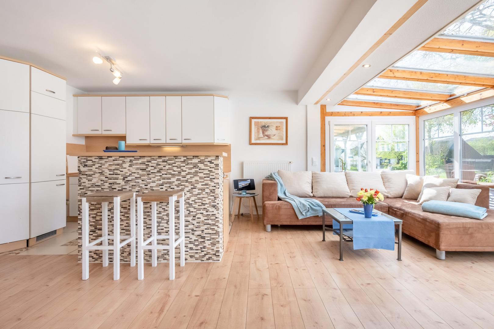 Die Wohnung "Wintergarten" liegt im Erdgeschoss unseres Hauses "Sturmwind" und bietet auf über 100 qm viel Platz für 2 bis max. 7 Personen. In der 2012 durchgeführten Komplettsanierung wurde der Wohn-/Essbereich durch einen 12 qm großen Wintergarten erweitert und verleiht der Wohnung dadurch einen einzigartigen Charakter. Die integrierte Einbauküche mit Frühstückstheke ist sehr komfortabel ausgestattet und lädt zum gemeinsamen Kochen ein. Die mit Gartenmöbeln versehene Holzterrasse bietet direkten Zugang zum Garten. Der Garten mit Strandkorb, Sonnenliegen, Sitzgelegenheiten, Grills und Spieleinrichtungen steht Ihnen zur Mitbenutzung zur Verfügung.