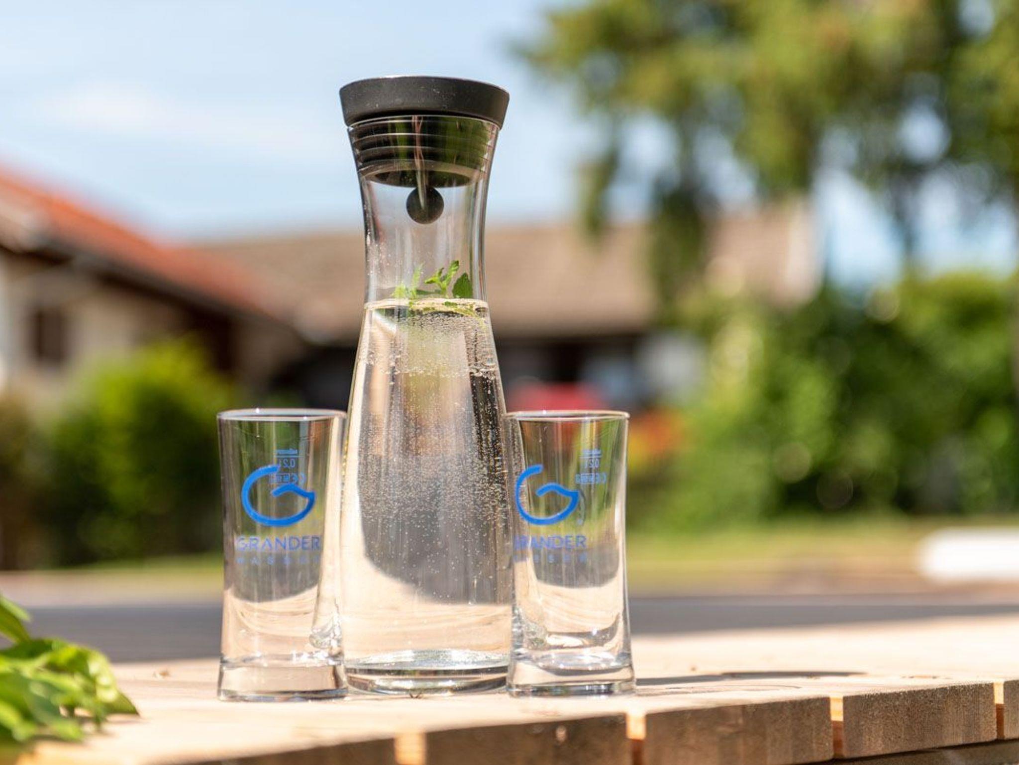 Beheizter Naturholz-Pool mit Holzterrasse und Liegewiese.