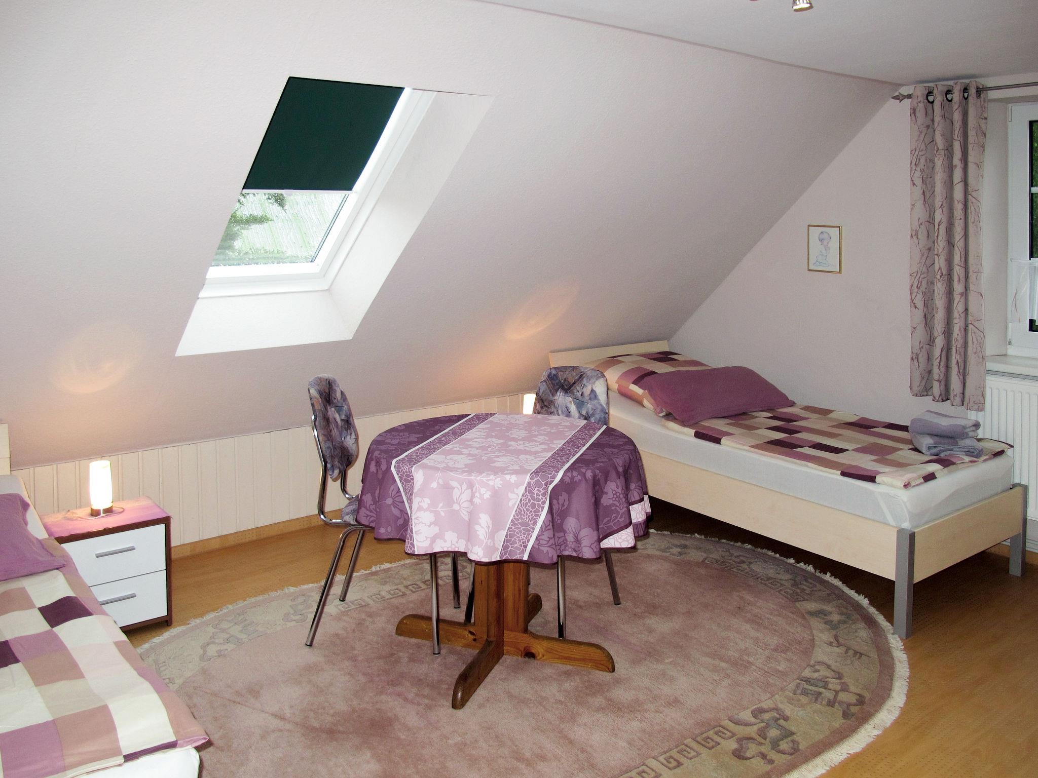3-room semi-detached house 110 m2 on 2 levels. Cosy furnishings: living room with satellite TV, radio and CD-player. Exit to the terrace. Open kitchen (oven, dishwasher, 4 ceramic glass hob hotplates, toaster, kettle, microwave, freezer, electric coffee machine) with dining table. Exit to the terrace. Shower/WC. Upper floor: 1 room with sloping ceilings with 1 double bed. 1 room with sloping ceilings with 2 beds. Gas heating. Carpet. Terrace, east facing position, patio, south facing position. Terrace furniture, barbecue (portable), deck chairs (4). Facilities: children's high chair, baby cot. Internet (WiFi, free). Parking (1 car) at the house. Please note: non-smoking house. Smoke alarm, fire extinguisher.