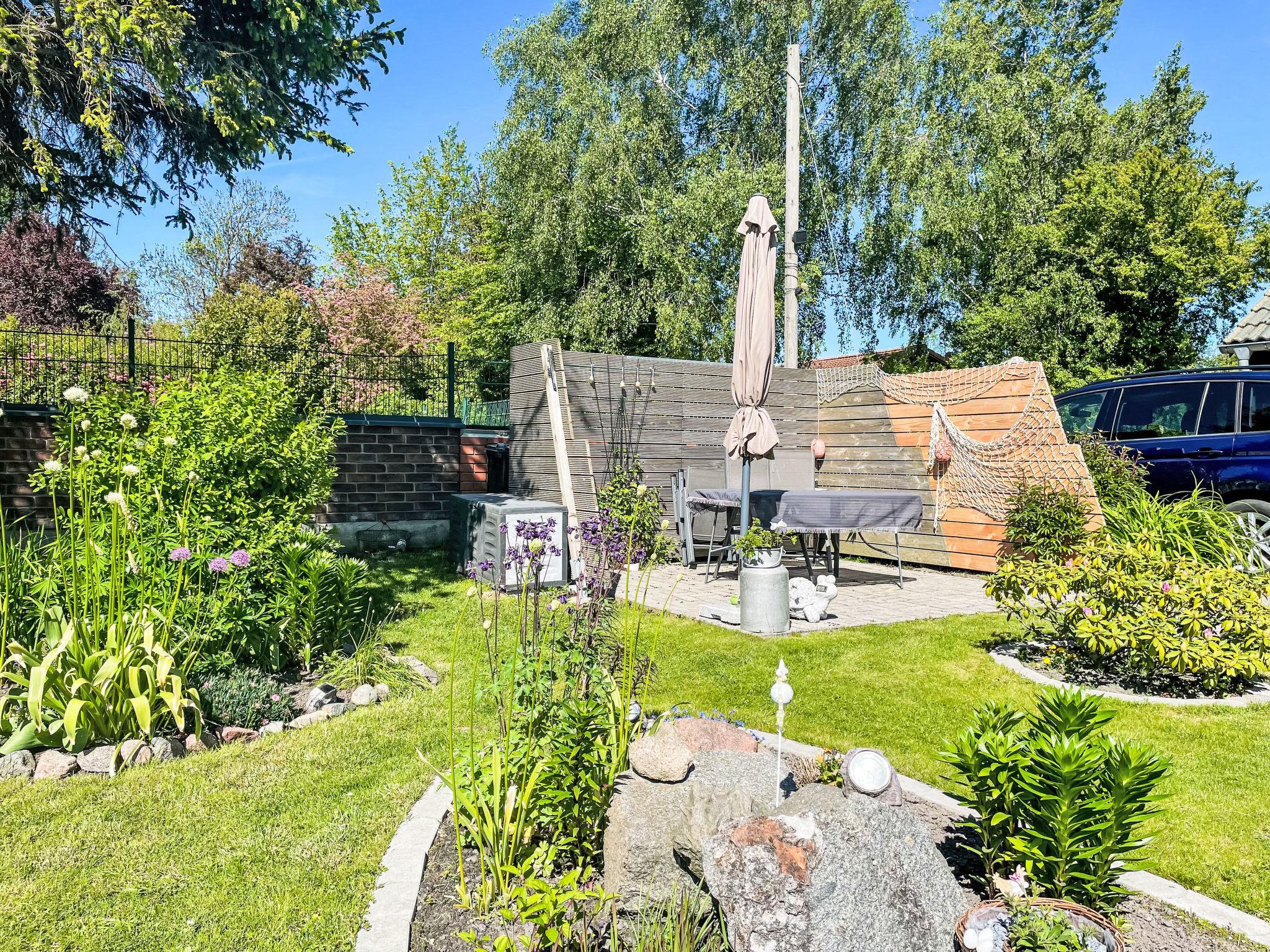 Beautiful semi-detached house "Kiebitz", surrounded by trees and meadows. 2 km from the centre of Lieschow, on the outskirts, 4.5 km from the centre of Waase, 7 km from the centre of Gingst, 7.5 km from the sea, 7.5 km from the beach, 1 km of lagoon. For shared use: property 3'800 m2 (fenced) with lawn, parking on the premises. Supermarket 7 km, bus stop "Lieschow" 2 km, sandy beach "Juliusruh" 36 km, grass beach "Suhrendorf" 7.5 km, swimming bay 4 km. Owner lives in separate semi-detached house.