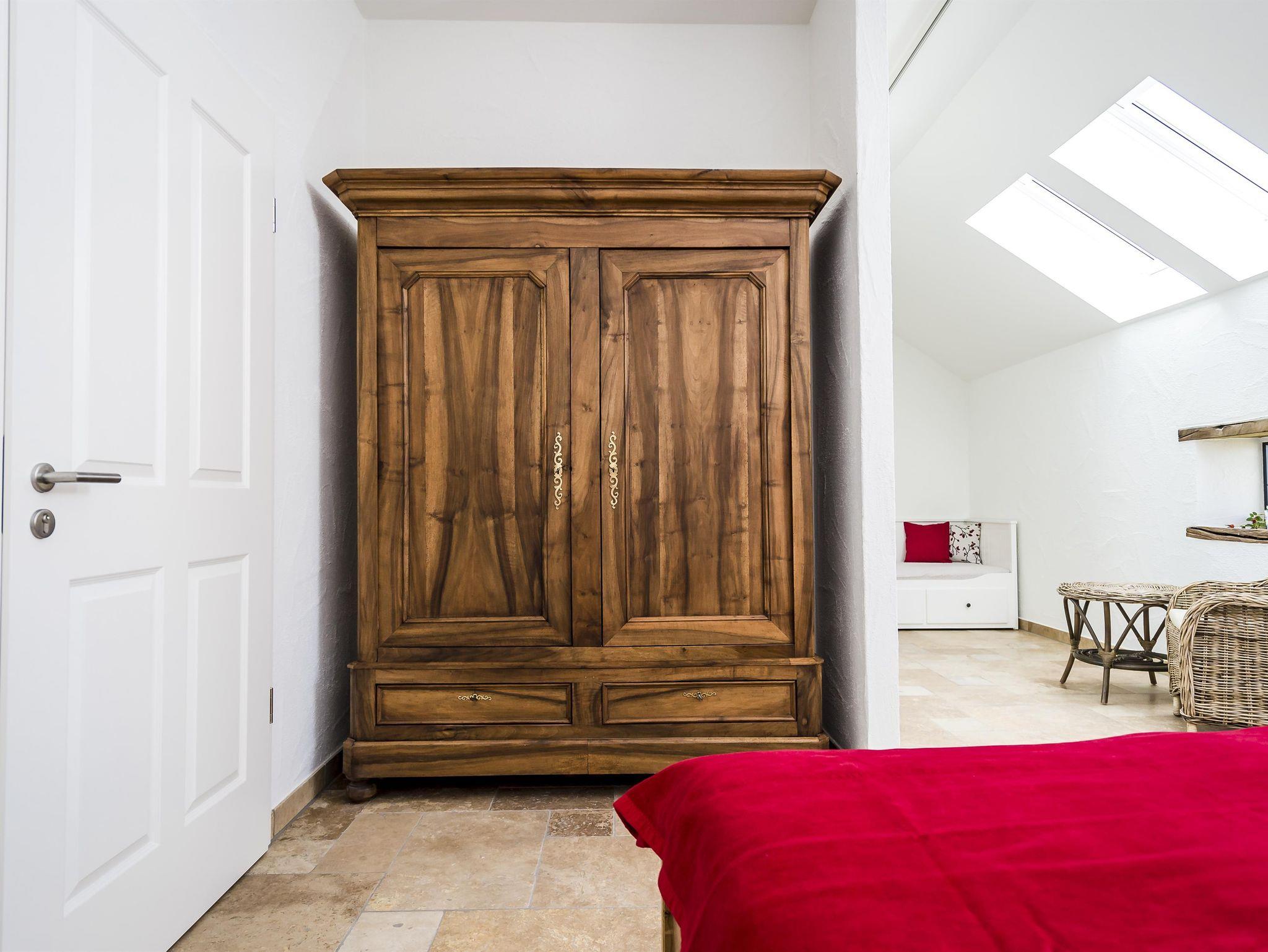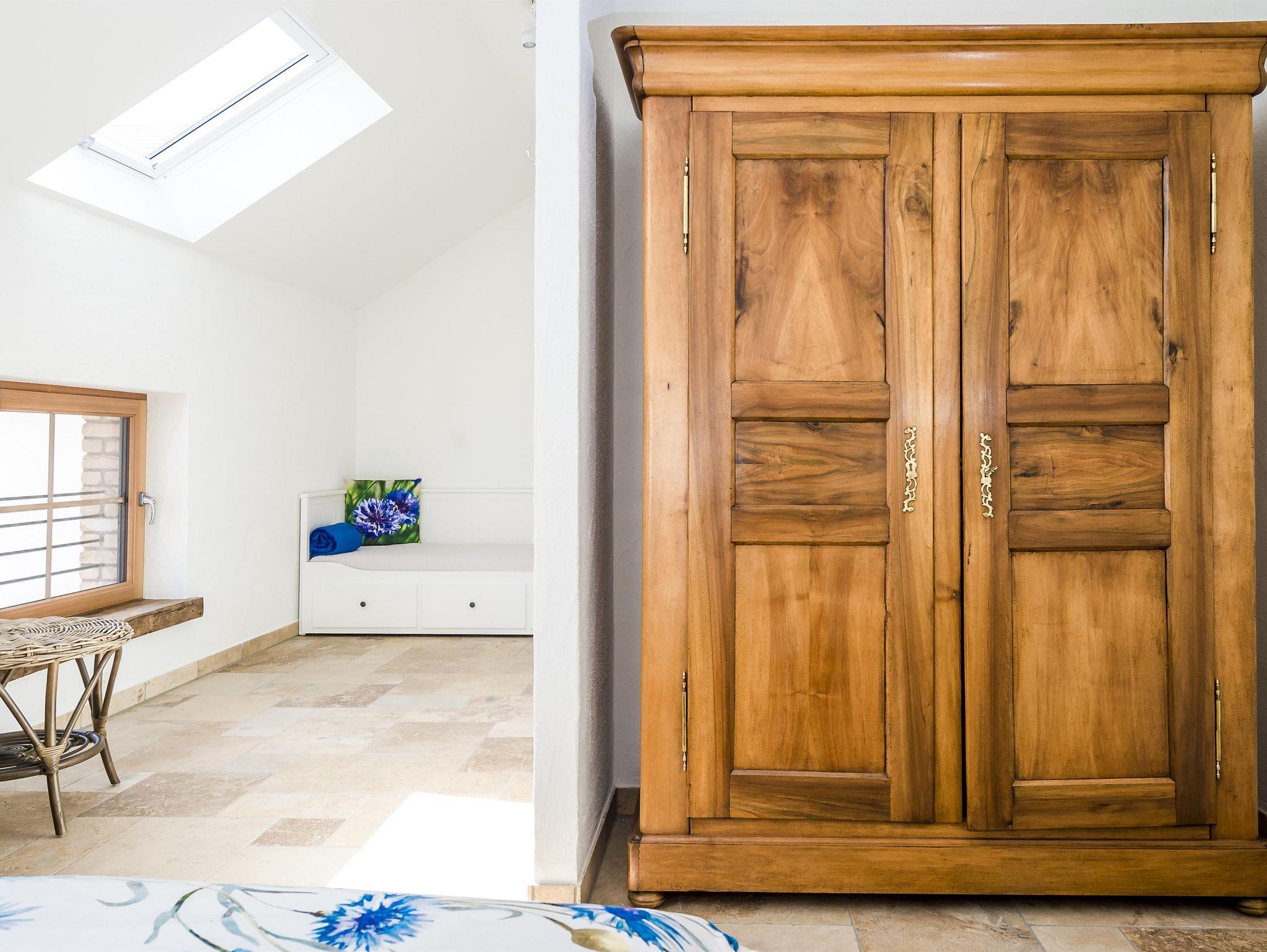 Unsere beiden Doppelzimmer mit zusätzlicher Schlafcouch, Kornblume und Hagebutte, sind ausgestattet mit einem modernen Doppelbett mit Kaltschaummatratzen sowie einer zusätzlichen Schlafcouch. Sitzgelegenheit, großer antiker Schrank und kleiner Schreibtisch komplettieren die Einrichtung.