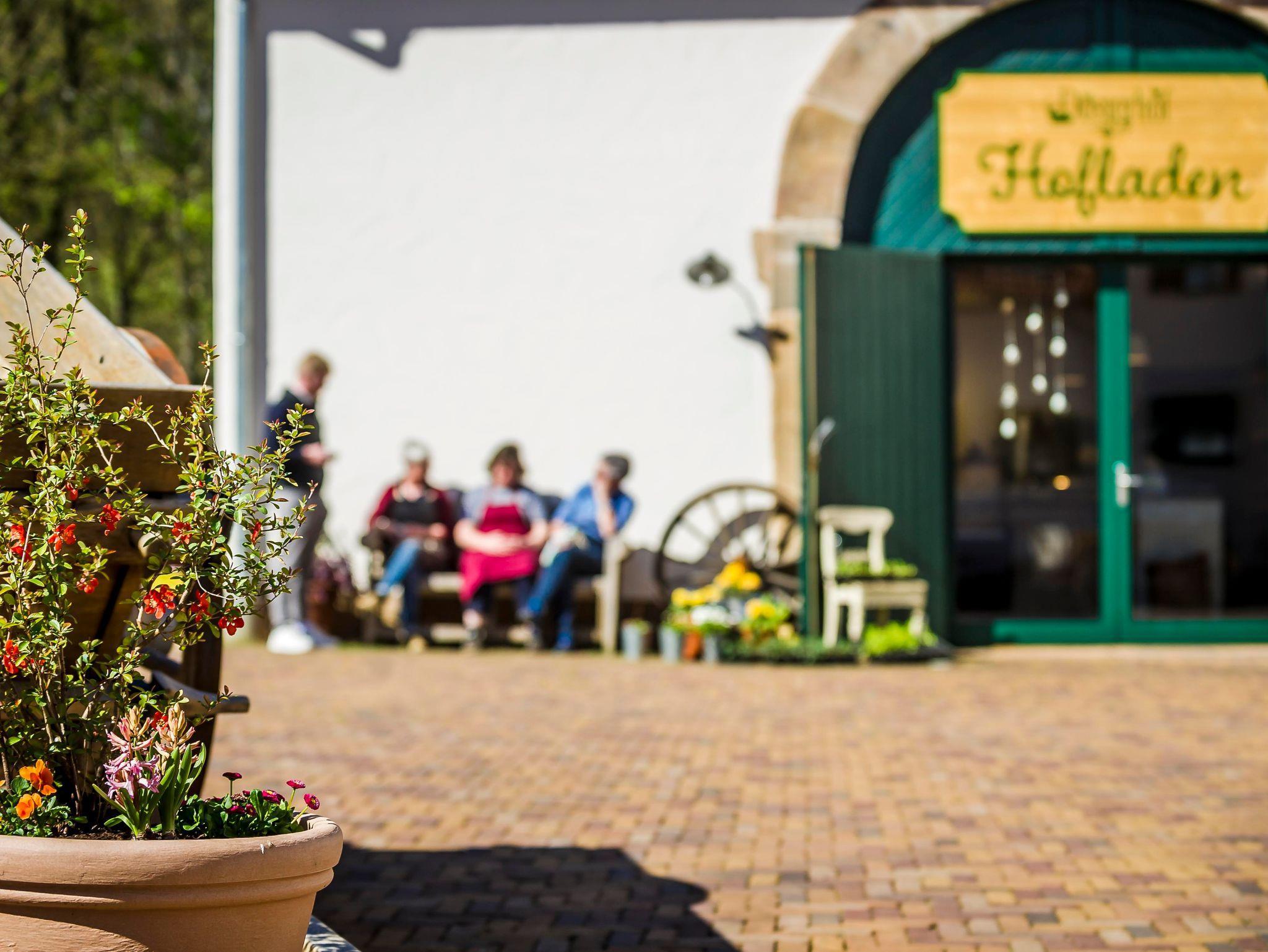 Lassen Sie sich in unserem Hofcafé und Hofladen mit hausgemachten Köstlichkeiten verwöhnen. In unserem Restaurantbetrieb im Hofcafé bietet unser Team Ihnen frische, saisonale Küche mit unserem hofeigenen Fleisch, hofgebackenen Kuchen und Torten sowie eine umfangreiche Getränkeauswahl mit Kaffeespezialitäten, hofgemachten Limonaden, frisch gezapftem Bier sowie Weinen ausgesuchter Winzer. Ab April können Sie unseren sonnigen Biergarten nutzen. Unsere Küche ist durchgehend geöffnet. Hofcafé geöffnet Freitag, Samstag, Sonntag und an Feiertagen.