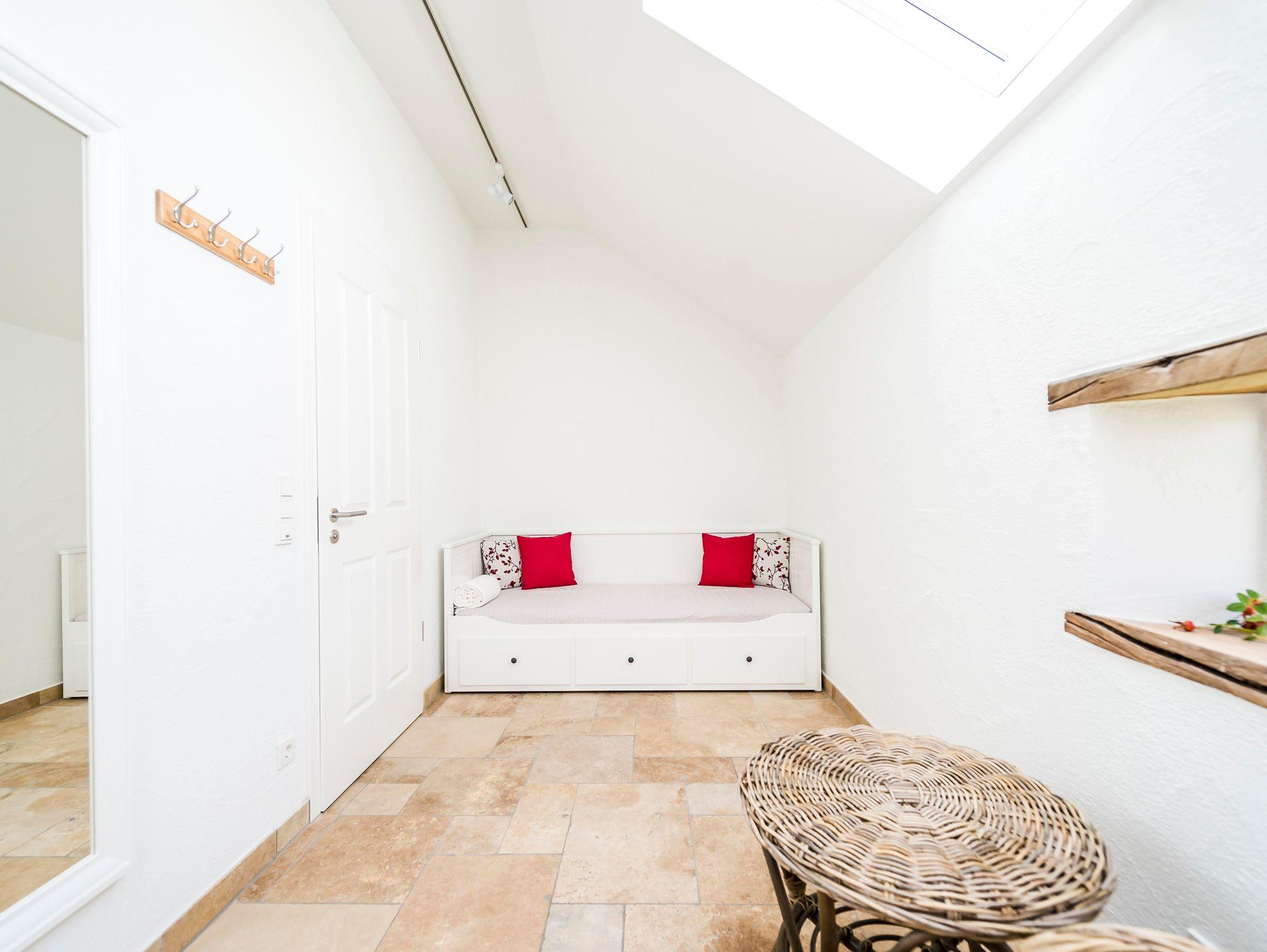 Wir bieten Ihnen sechs helle und großzügige Hotelzimmer, mit hochwertigen Travertin-Natursteinböden sowie modernen Bädern ausgestattet. Sie sind liebevoll mit Liebe zum Detail eingerichtet und soweit möglich sind alte bauliche Details wie Fensterbänke aus altem Eichengebälk erhalten worden. Alternativ können Sie sich auch in unseren vier Ferienwohnungen eine Auszeit nehmen.