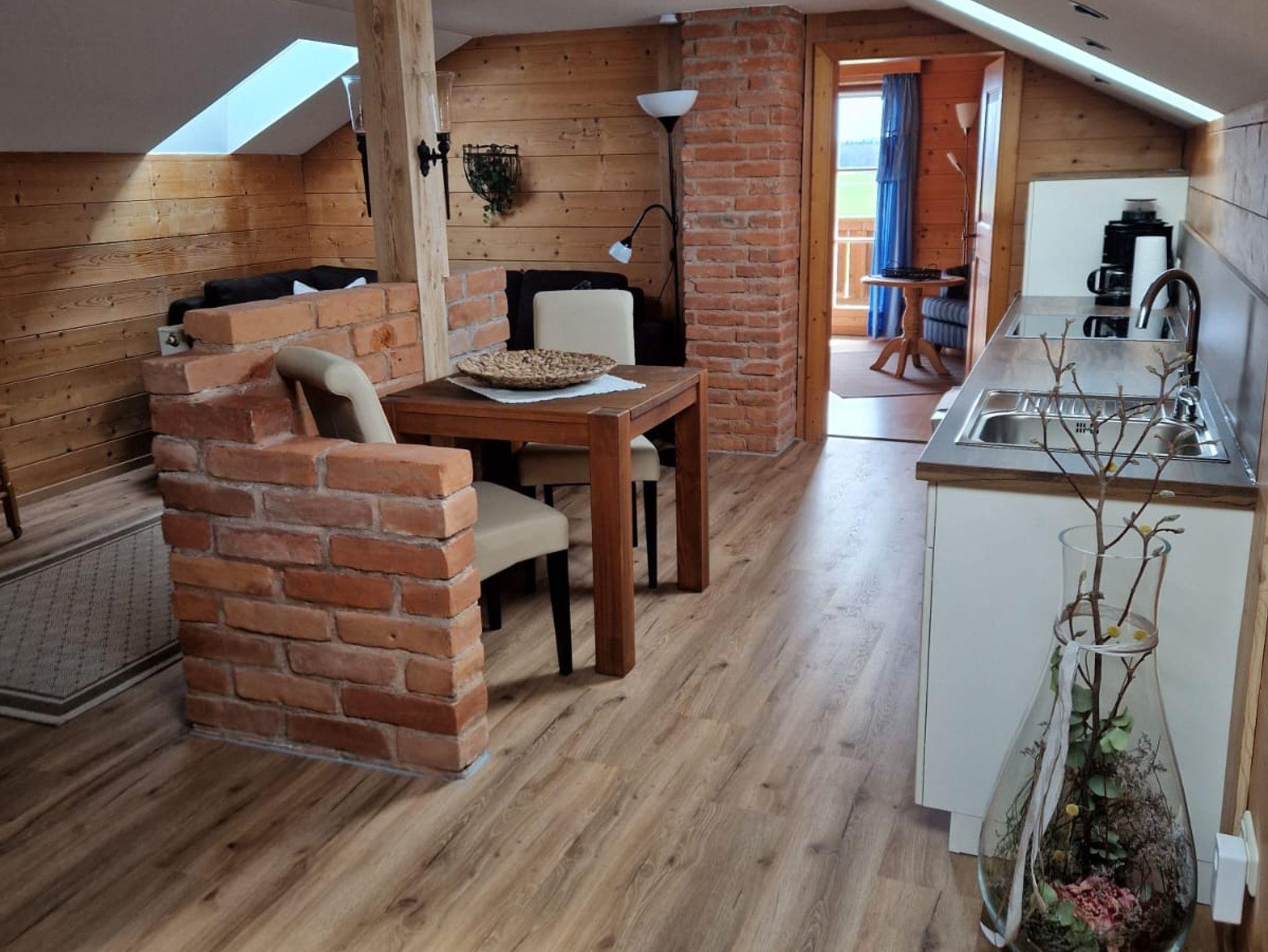 Die FerienwohnungZwieselblick befindet sich in einem Nebengebäude unseres Bauernhofes. Die Wohnung verfügt über 1 Schlafzimmer, eine Wohnküche mit voll ausgestatteter Küchenzeile und Spülmaschine, Essecke und Sitzgruppe mit Flachbild-TV. Diese Wohnung hat einen eigenen Balkon mit traumhaften Bergpanoramablick.