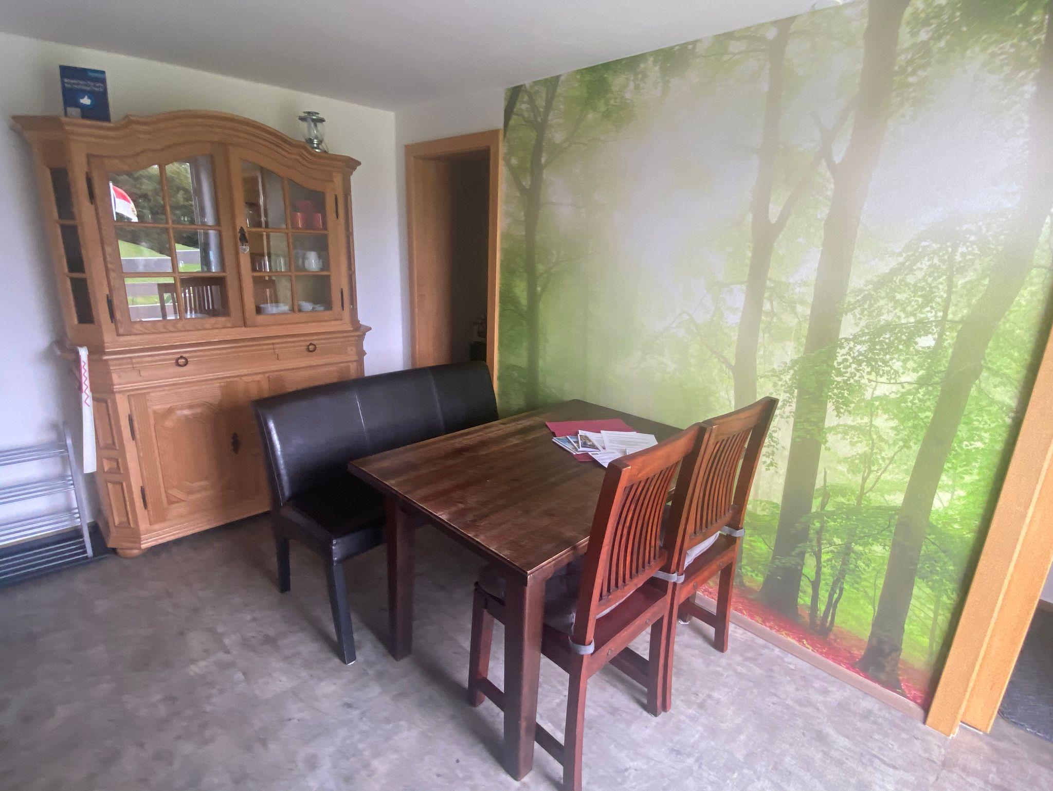 Zur neuen Ferienwohnung mit 95 qm gehört eine Küche, ein Wohnzimmer, zwei Schlafräume mit je einem Doppelbett, optional gibt es noch ein Kinderbett für Kinder bis 3 Jahren, Bad, extra WC, Abstellräume für Bügelutensilien und eine Waschmaschine, die kostenfrei für Sie zur Verfügung steht. Vom Balkon genießen Sie den unverbauten Blick ins Grüne. Im Außenbereich stehen Gartenmöbel mit Grillmöglichkeit extra für unsere Gäste sowie für die Kinder eine Schaukel, ein Sandkasten und ein Fußballtor. Ein Tischtennistisch, eine Einstellmöglichkeit für Fahrräder und ein Parkplatz direkt beim Haus sind ebenfalls vorhanden. Das Wlan nutzen Sie während Ihres Aufenthaltes natürlich kostenfrei. Wir freuen uns auf Sie!