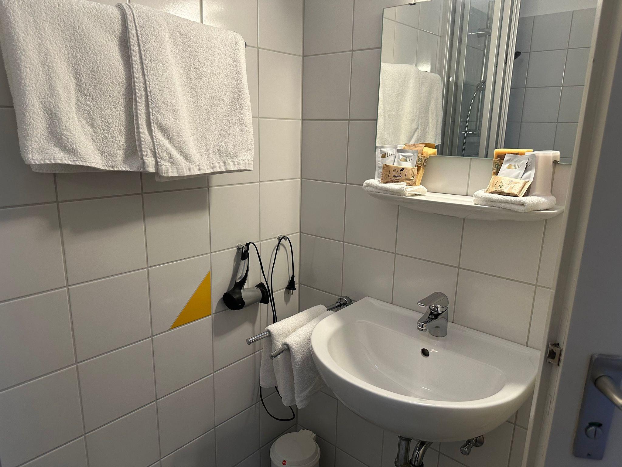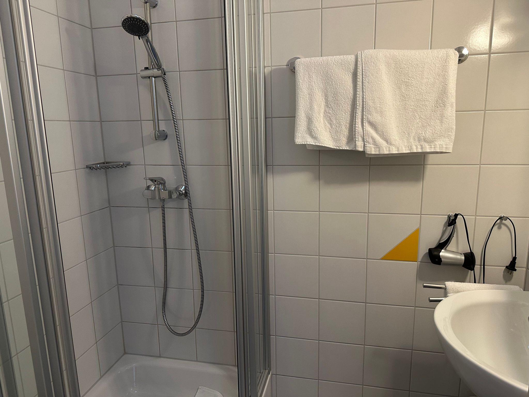 Kostenloses WLAN in allen Räumen sorgt für den Zugang ins Internet. Ein geräumiger Schrank, ein funktionaler Schreibtisch sowie das Badezimmer mit Dusche und WC bieten Ihnen Komfort und Klarheit.