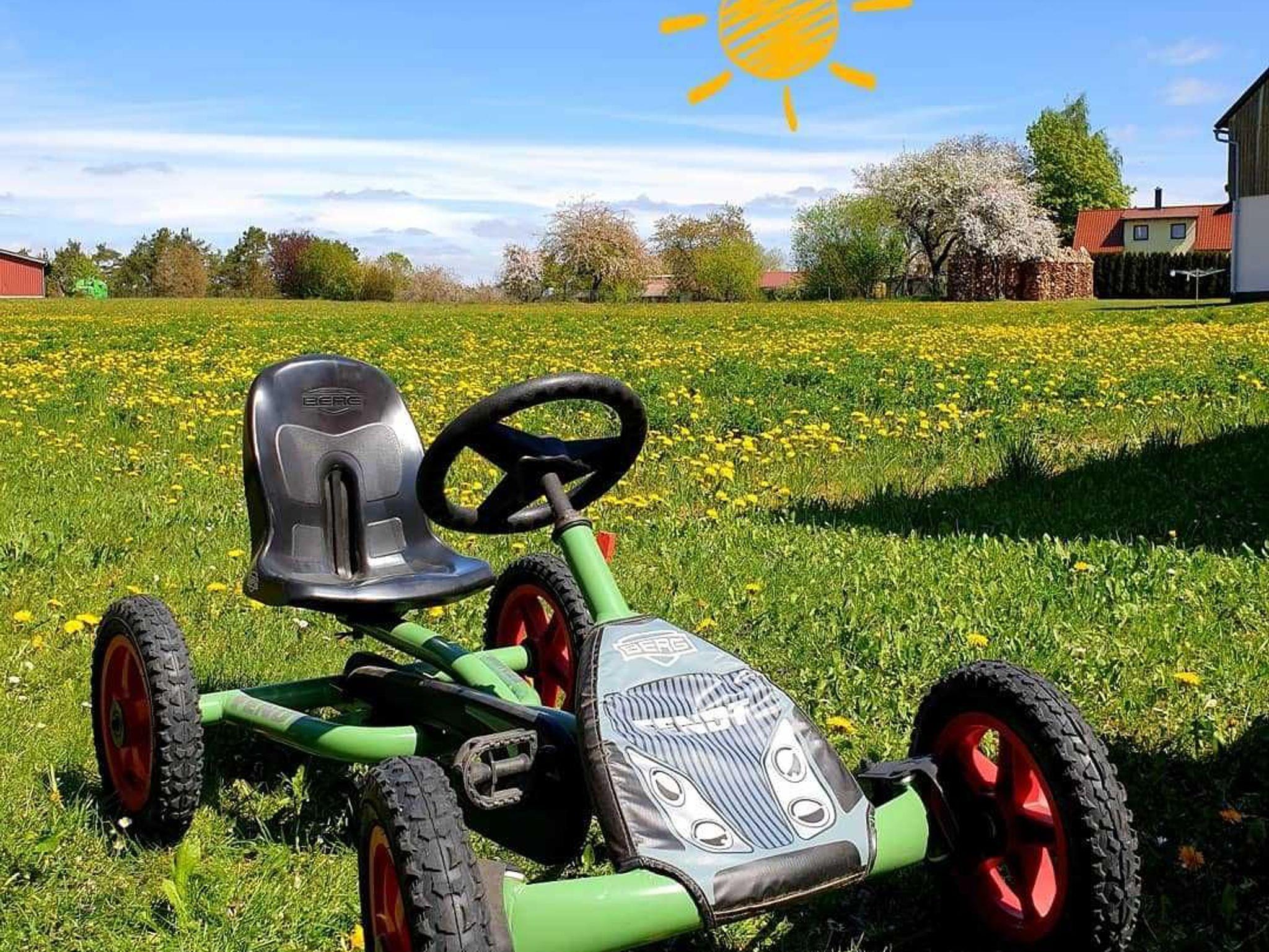 Ein Garten mit Spiel- und Liegewiese eignet sich auch besonders für unsere kleinen Gäste zum Herumtoben an. Euch erwartet ein großes Trampolin mit Netzfang, Schaukel, Rutsche, Sandkasten, Kettcar, Gocart und noch weitere Spielsachen. Unsere Hasen Lilli und Moritz sowie unsere Katze Strolch freuen sich auch schon auf EUCH! Außerdem könnt ihr täglich eure frische Kuhmilch direkt vom Bauernhof nebenan holen und Kälber streicheln. Ponyreiten und Ponykutschfahrten sind auch im Ort möglich!!!