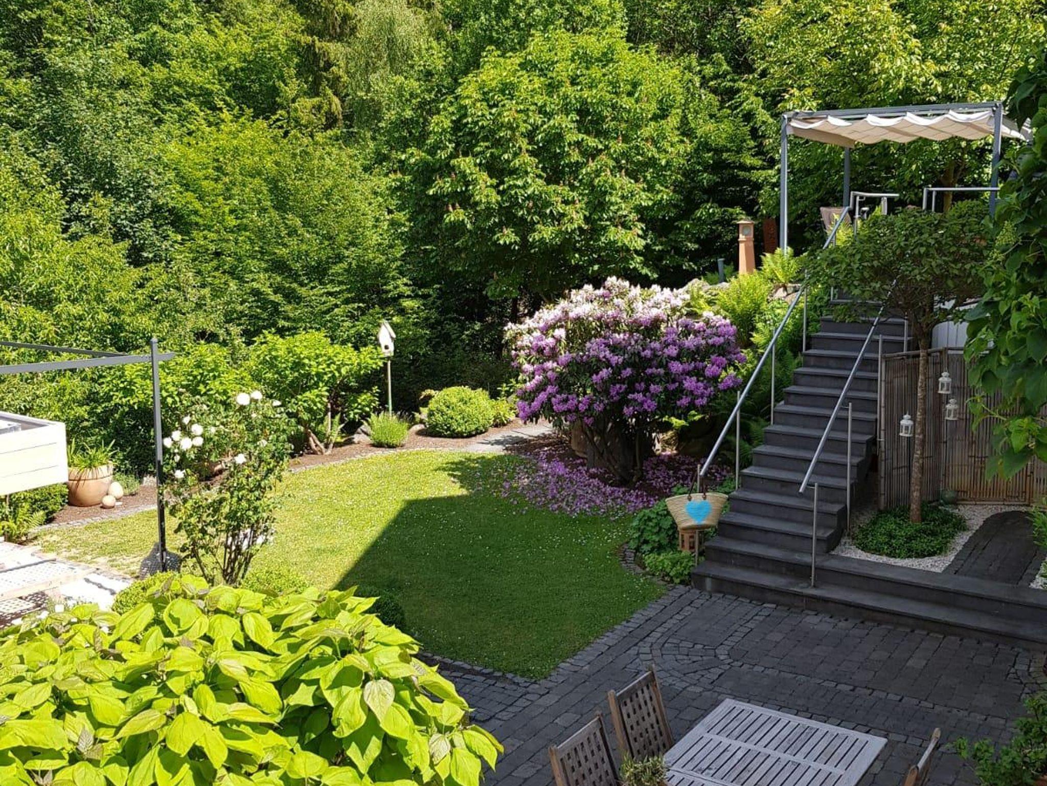 Zur Ferienwohnung führen mehrere Stufen! Sie ist aber auch stufenlos über eine Wiese zu erreichen.