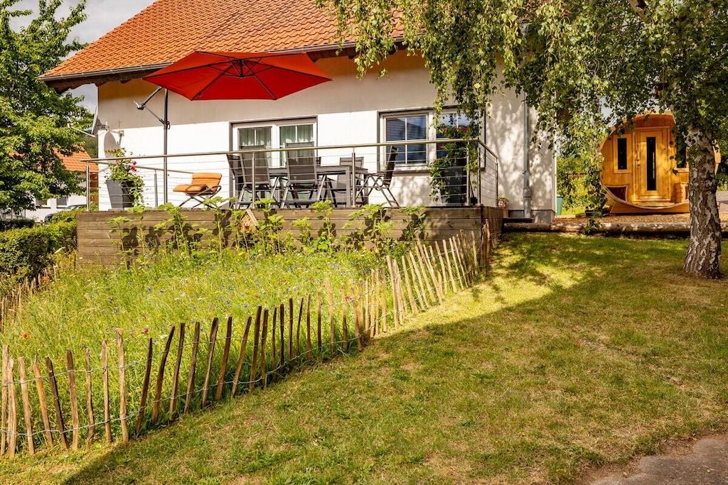 Cozy holiday home (104 sqm) with rustic sauna barrel, 3 bedrooms and 2 bathrooms, sun terrace, balcony with grill, 4-star