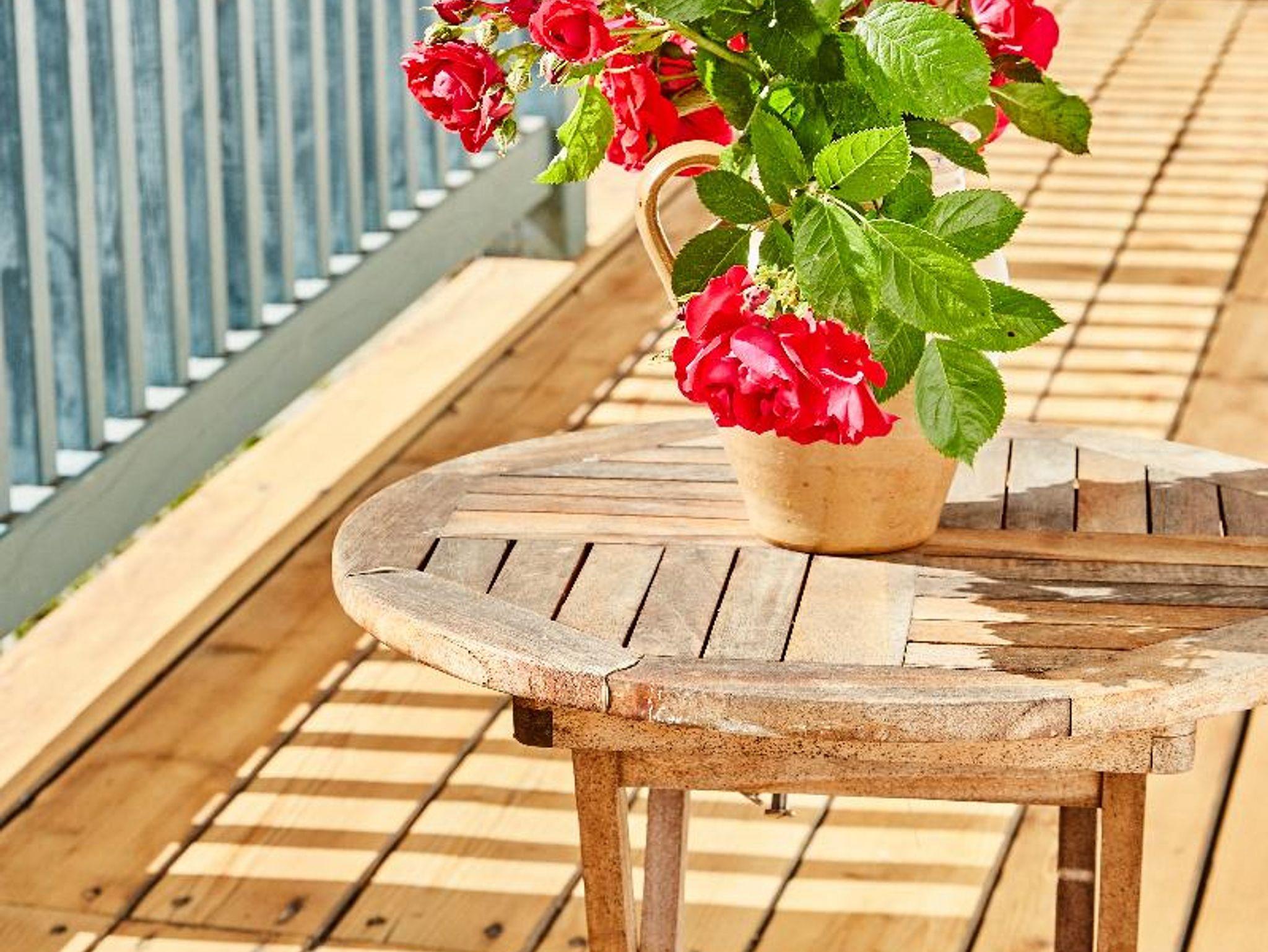 Die Wohnung verfügt über Massiv-Naturmöbel.