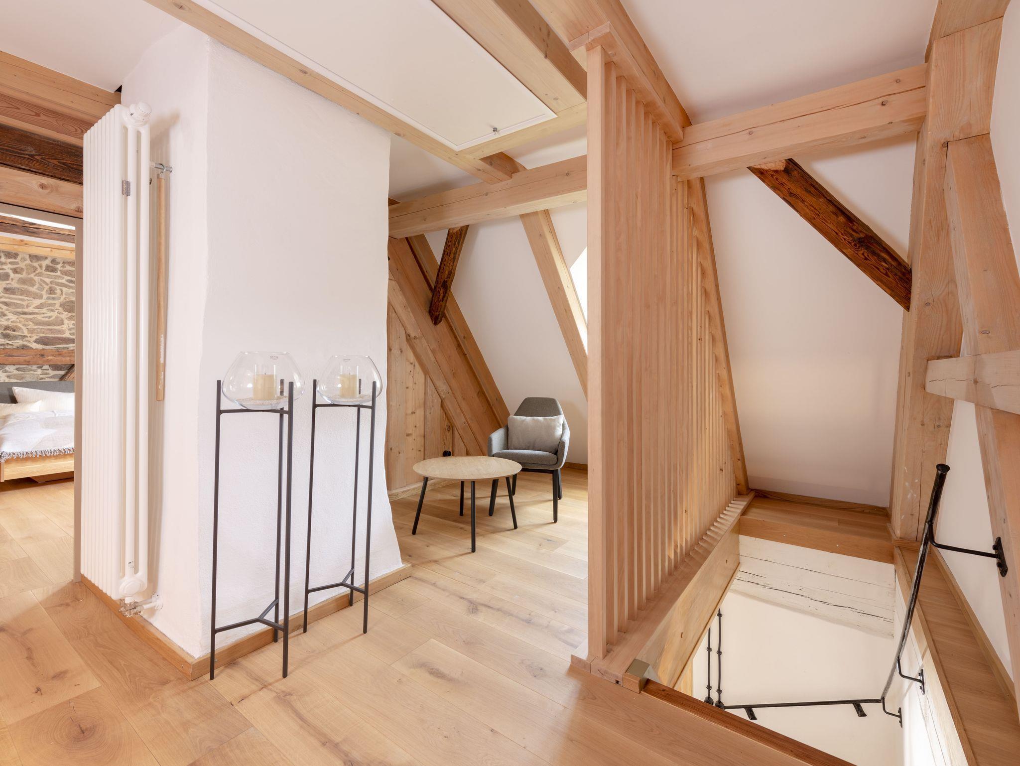 Charmantes Wohnen für Liebhaber alter Häuser in einem liebevoll sanierten Fachwerkhaus mit schiefen Wänden, engen Treppen und alten Balken – modern und funktionell eingerichtet! Tolle, ruhige Lage im Herzen der Altstadt. Das Gästehaus St. Joseph ist ca. 200 m entfernt. Restaurants, Sehenswürdigkeiten und Einkaufsmöglichkeiten sind leicht zu Fuß erreichbar. Die Ferienwohnung ist mit zwei alten, etwas steilen Holzstiegen in das erste und zweite Obergeschoss verbunden.