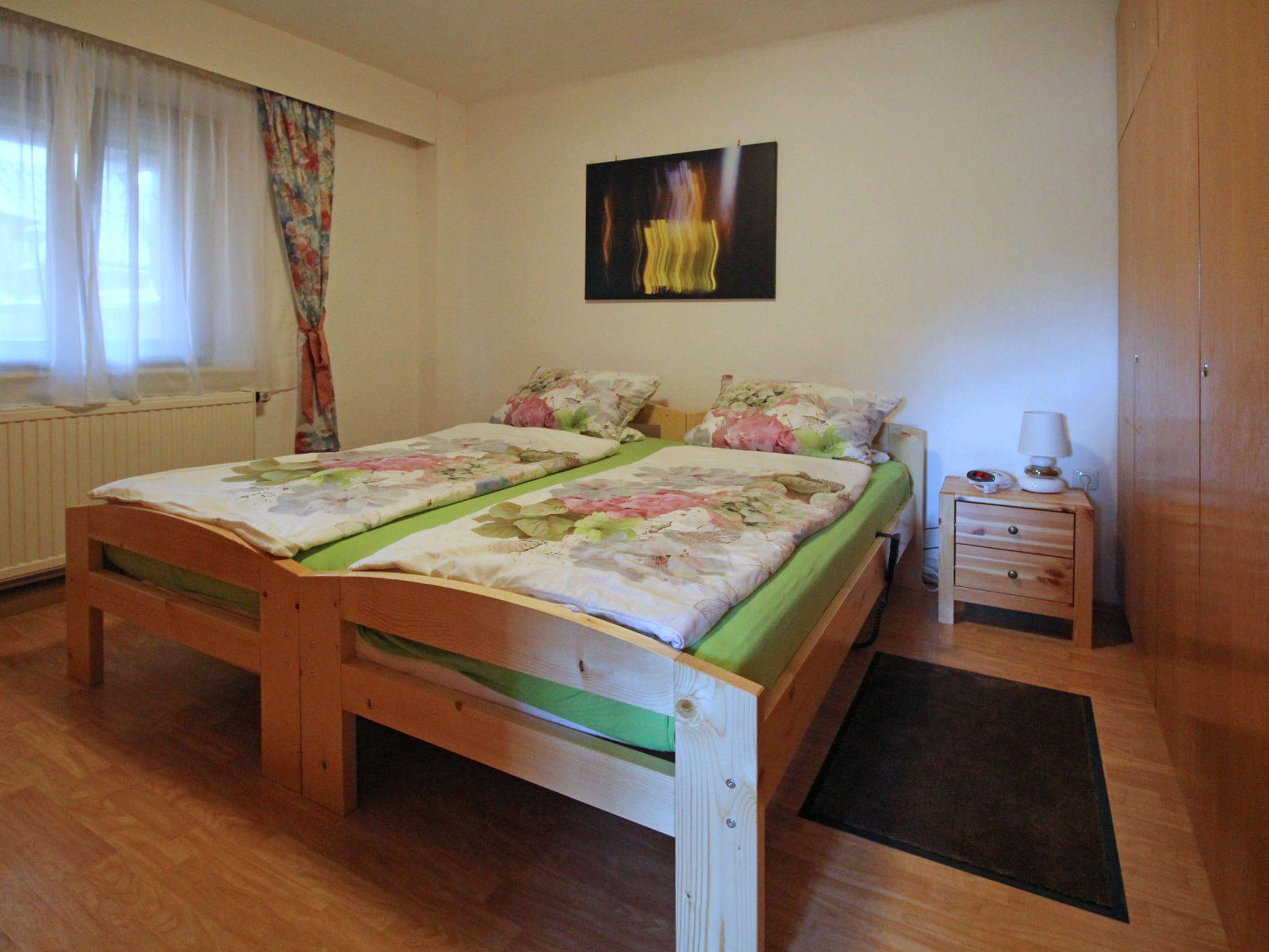 1 Schlafzimmer, 2 zusammen gestellte Einzelbetten mit elektrisch verstellbaren Lattenrost. Betten können auch auseinander gestellt werden. Ein fest eingebautes Fliegengitter im Fenster schützt Sie Nachts vor lästigen Mücken. Kabel-TV.