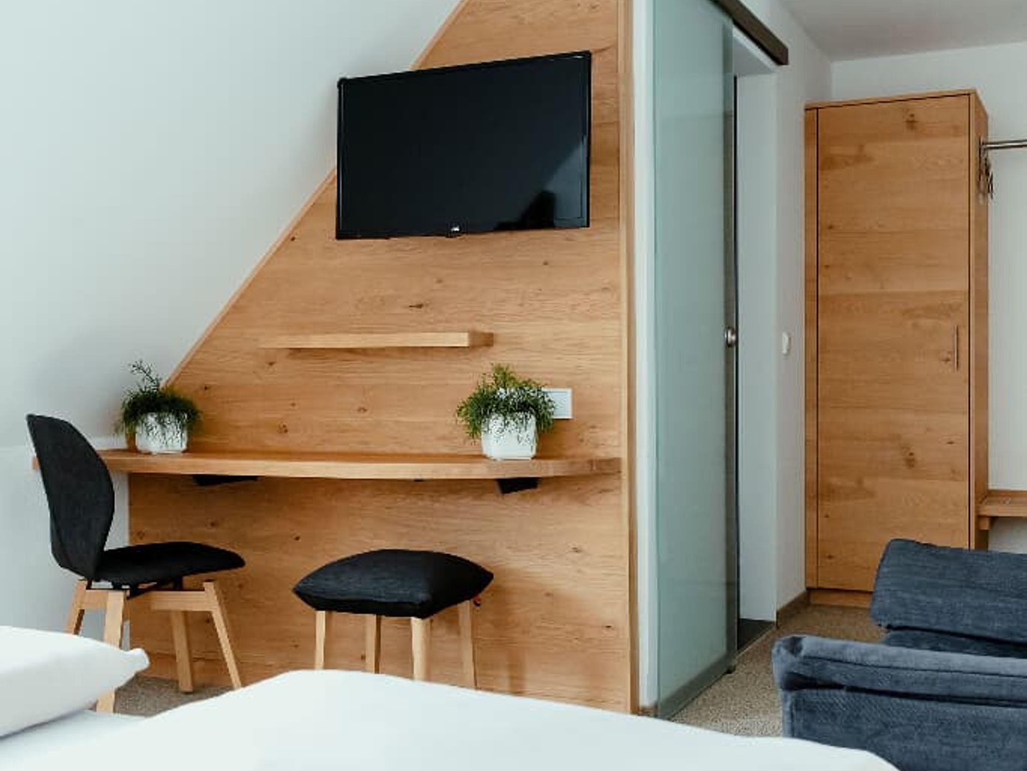 Die gemütlichen Zimmer wurden 2019 komplett neu renoviert, sind stilvoll und modern eingerichtet, alle ausgestattet mit Dusche und WC, Föhn, Telefon und Kabelfernsehen.