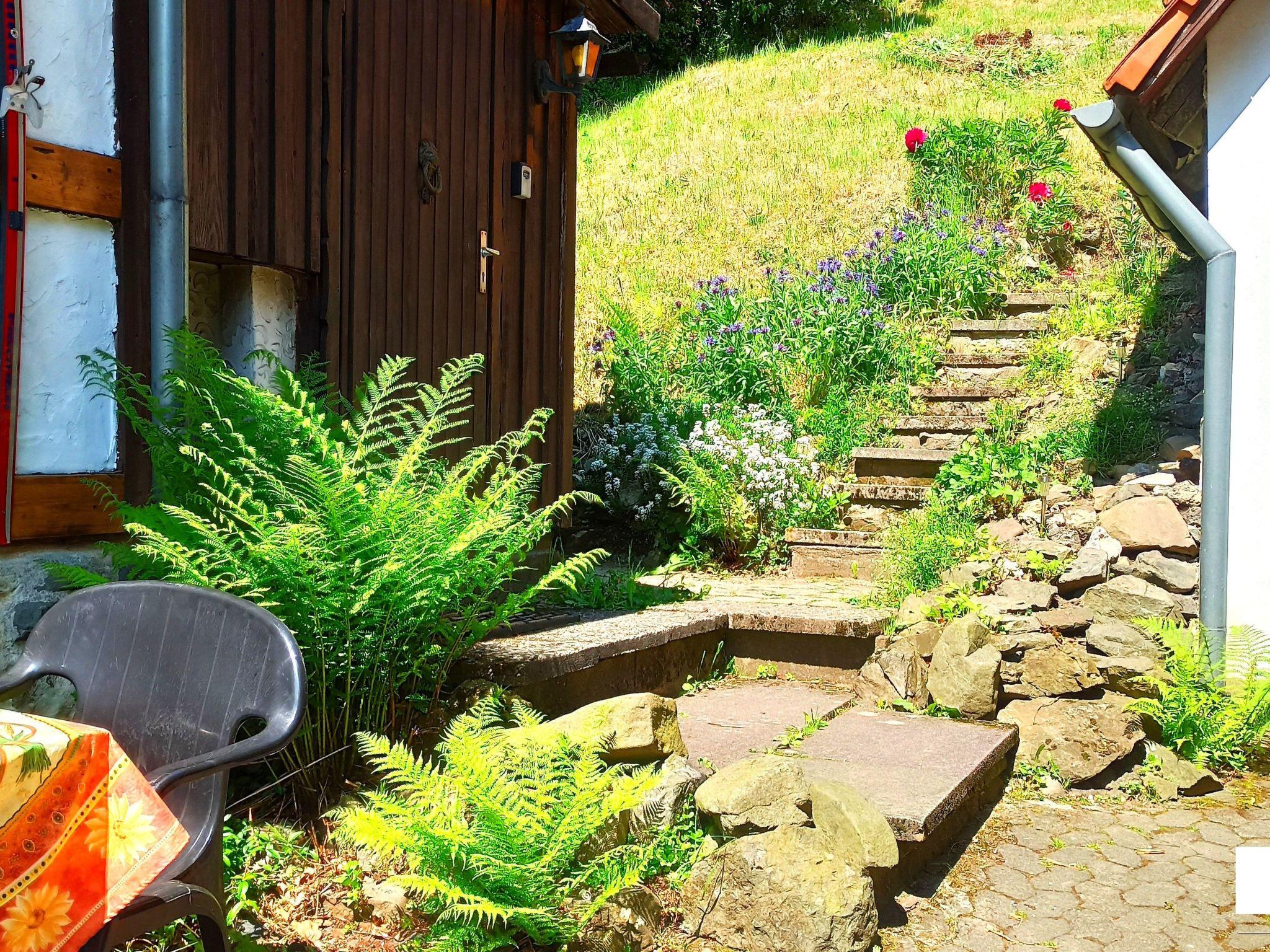 The backyard of the Hütte is truly a paradise for nature lovers. With 1000 m² rising steeply up the slope and directly bordering a fairytale forest, it offers multiple terraces with garden furniture, a gas barbecue, and a swing seat with unparalleled views over the village and valley. This zig-zagging path leads you through several levels of terraces, ideal for relaxing after a day of adventures in nature.