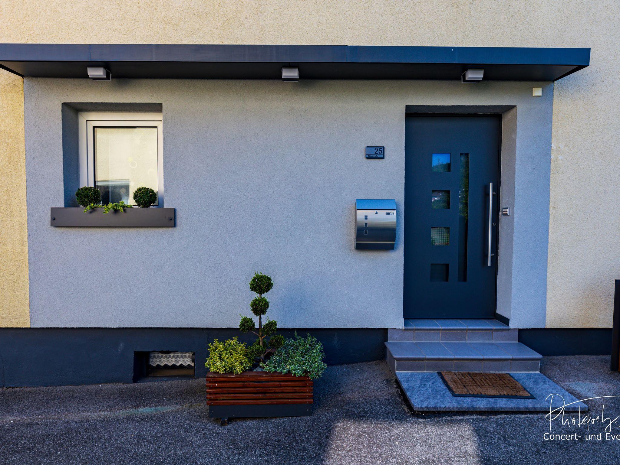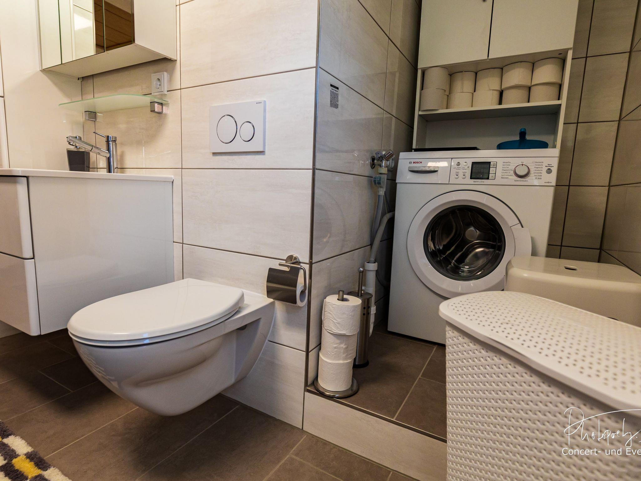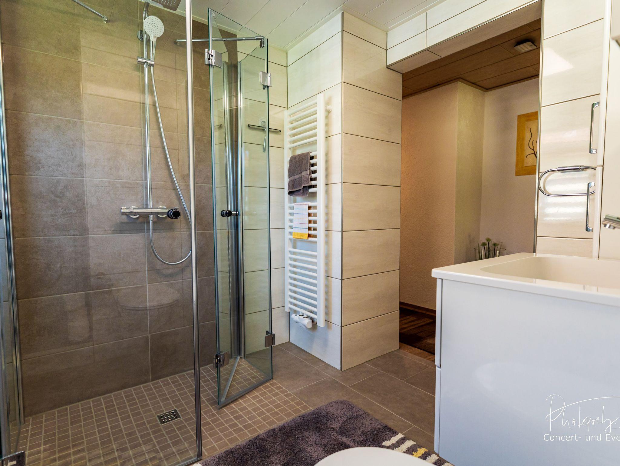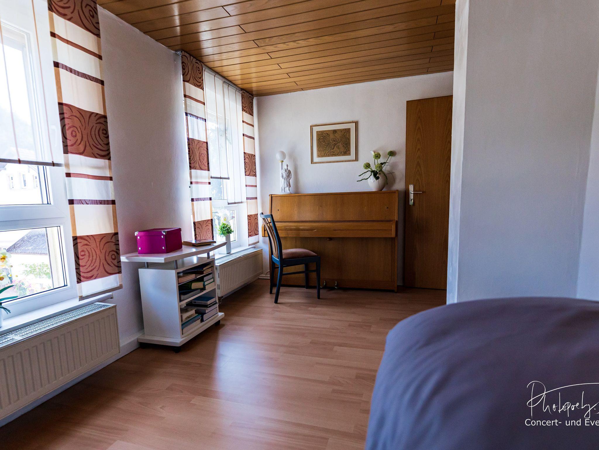 Unsere Ferienwohnung mit ca. 75qm Wohnfläche im Obergeschoss bietet Platz für 4 Personen. Das moderne und gemütliche Wohnzimmer mit Ledersofa, Flachbild-TV und Esstisch mit Sitzecke lädt zum Entspannen ein. Die komplett ausgestattete Küche mit Geschirrspüler, Kühlschrank inkl. Gefrierfach, Herd, Backofen, Wasserkocher, Eierkocher, Toaster und Filter-Kaffeemaschine lässt keine Wünsche offen. Die Ferienwohnung verfügt über zwei Schlafzimmer mit Doppelbett sowie zwei Einzelbetten. Das geräumige Badezimmer mit ebenerdiger Walk-in-Dusche aus Glas, Spiegelschrank, Föhn, Handtuchtrocker sowie Waschmaschine rundet das Gesamtbild ab. WLAN in der gesamten Wohnung sowie ein eigener Parkplatz vor dem Eingang und ein zusätzlicher Stellplatz vor dem Haus stehen kostenfrei zur Verfügung. Weiterhin verfügt das Haus über eine eigene Fahrradgarage mit Lademöglichkeit für E-Bikes. Im Garten können frische Kräuter zur Verfeinerung von Speisen verwendet werden. Zusätzlich gibt es auf Wunsch einen Lieferservice der örtlichen Bäckerei.