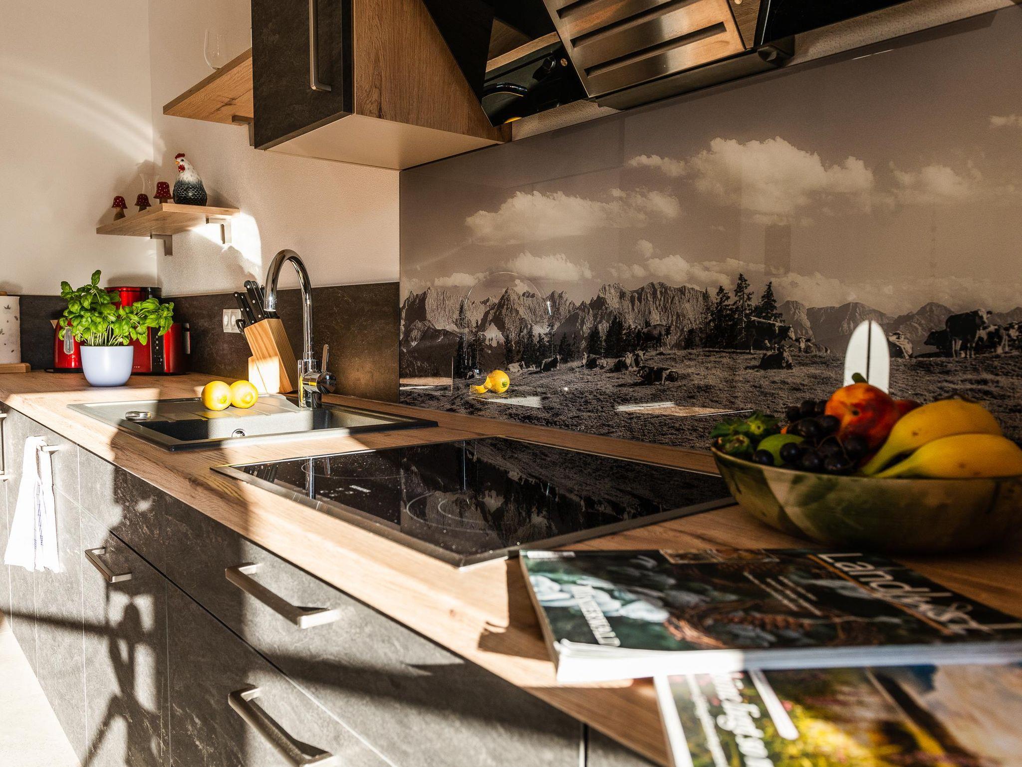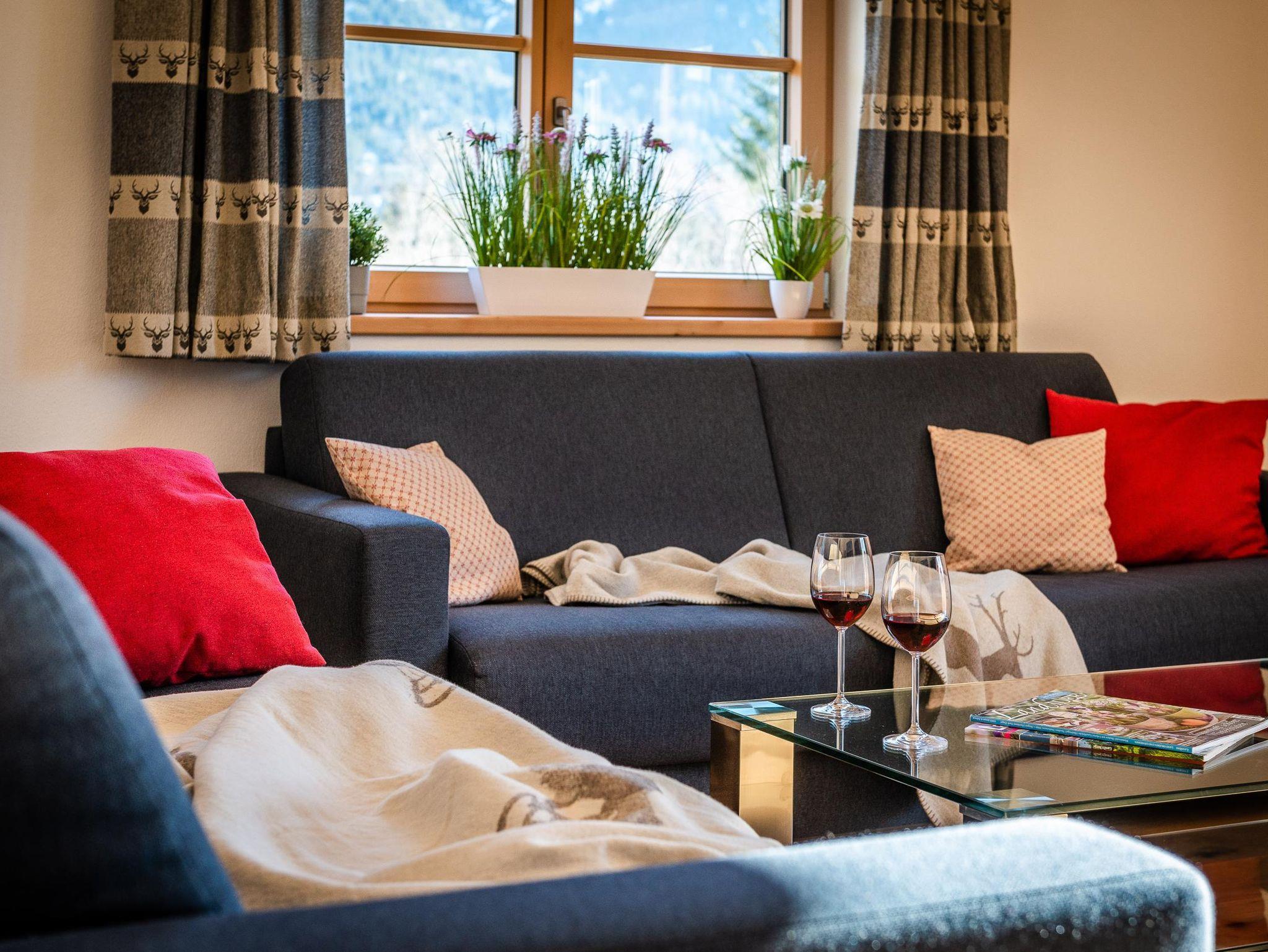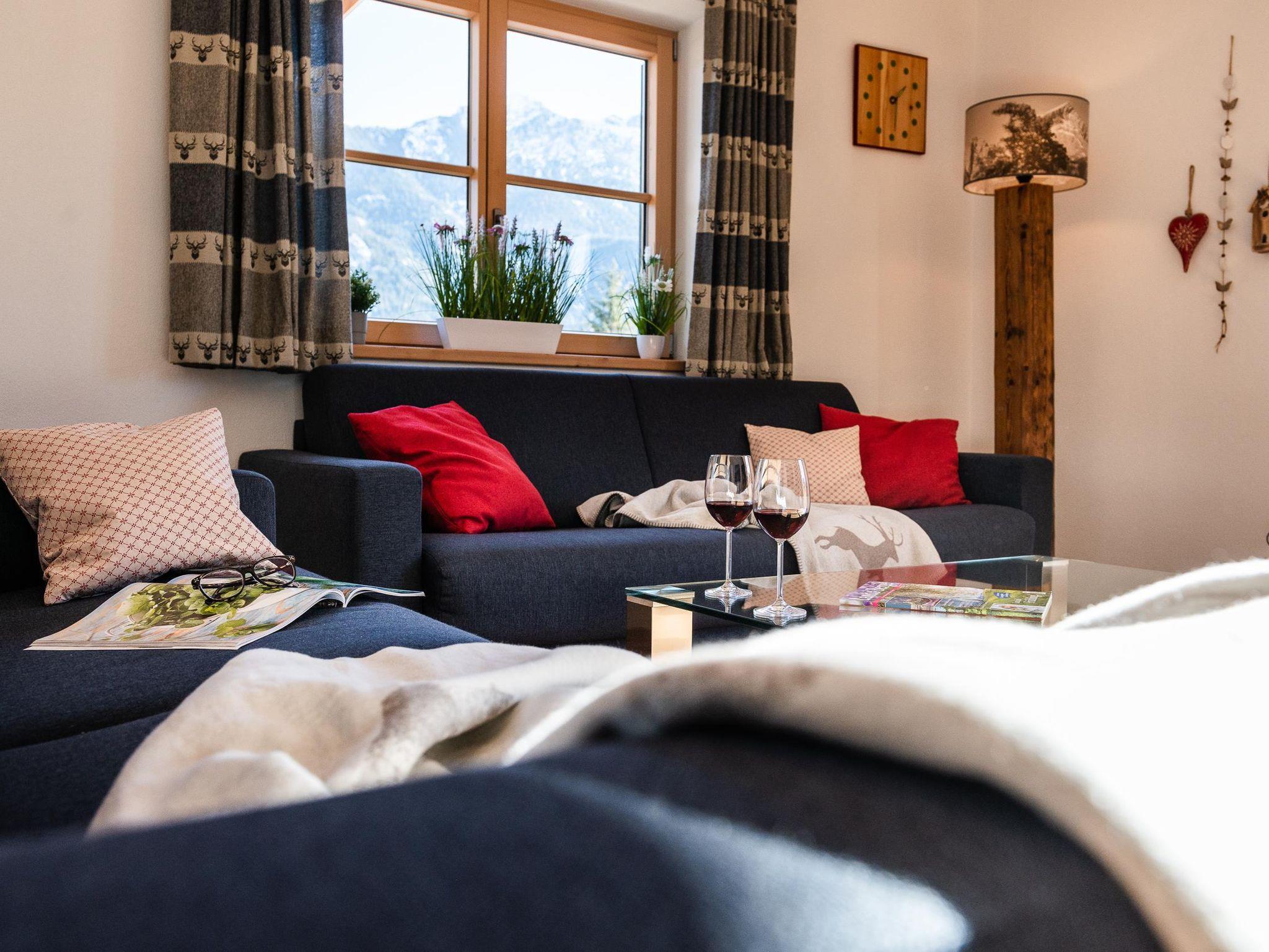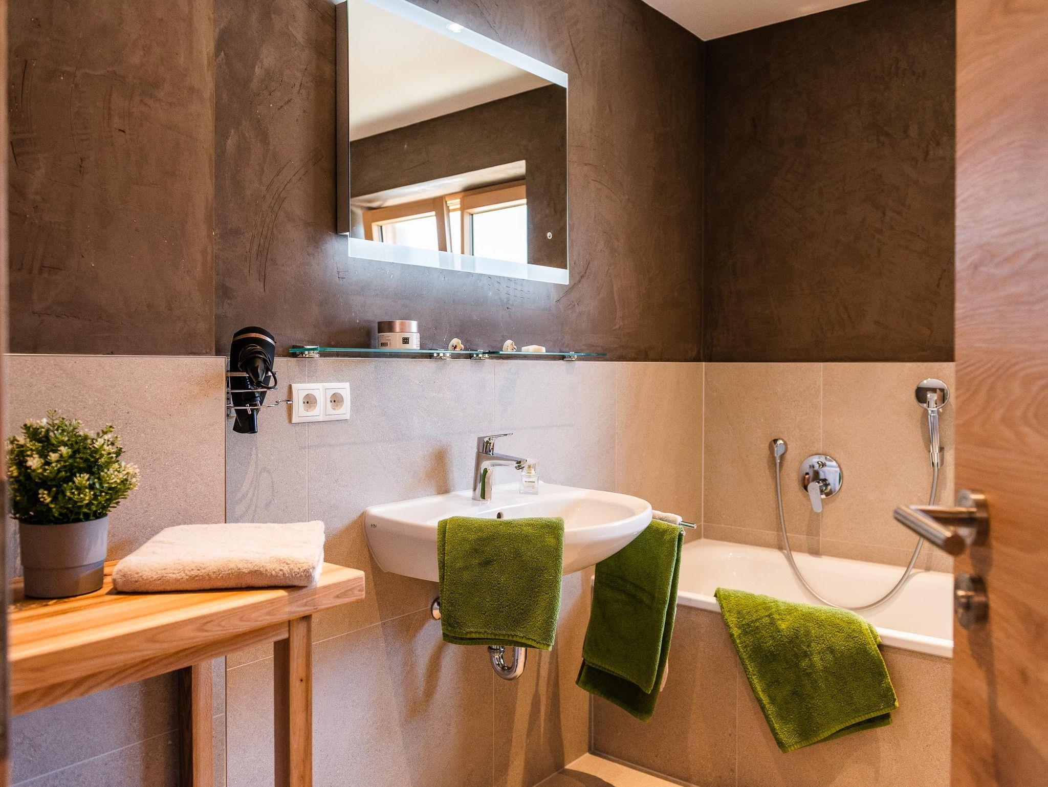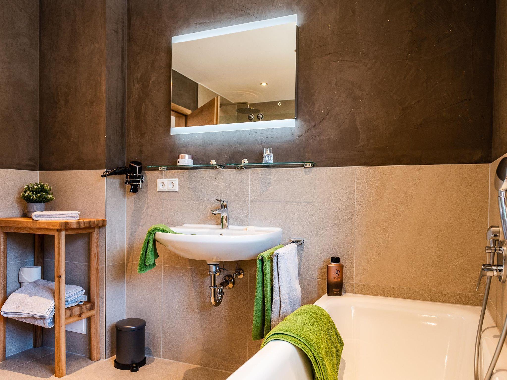 Unsere gemütliche und sehr hochwertig eingerichtet Ferienwohnung im Ländlichen Stil mit 90 m² Wohnfläche befindet sich im 1.Stock und bietet Platz für 1-5 Personen. Die komplett ausgestattete Wohnküche mit Geschirrspüler, Kühlschrank, Herd, Backofen, Wasserkocher und Kaffeemaschine lässt keine Wünsche offen, eine gemütliche Essgruppe rundet das Gesamtbild ab. Im Wohnzimmer befindet sich ein Flachbildfernseher, eine urige Bar und hat einen direkten Zugang zum großen Südost Balkon mit einzigartigem Blick auf das Karwendelgebirge. Die Ferienwohnung verfügt insgesamt über 2 Schlafzimmer, davon ein Schlafzimmer mit einem Doppelbett und ein Schlafzimmer mit einem Doppelbett und einem Einzelbett. Das barrierefreie Badezimmer verfügt über eine Dusche, Badewanne und ein WC. Bettwäsche, Handtücher, kostenfreie WLAN-Nutzung, Parkplatz und Endreinigung sind im Preis enthalten.