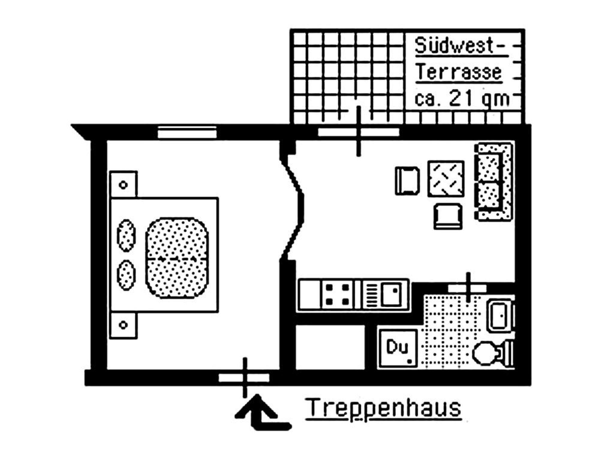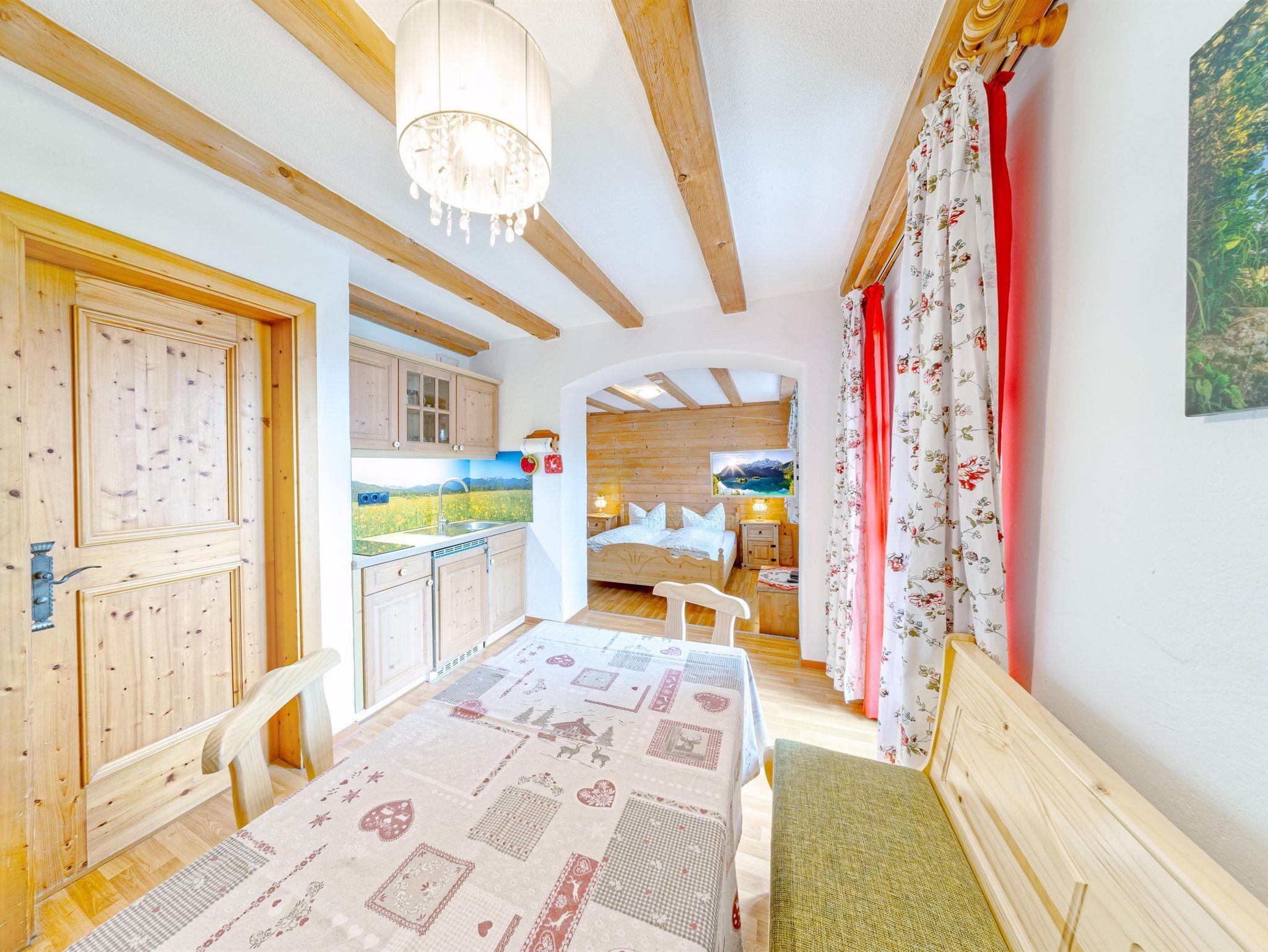 Nichtraucher-Wohnung Karwendel - 1-Zimmer-Ferienwohnung für 2 Personen, 1. Stock ca. 35 qm, Südwest-Terrasse ca. 15 qm.