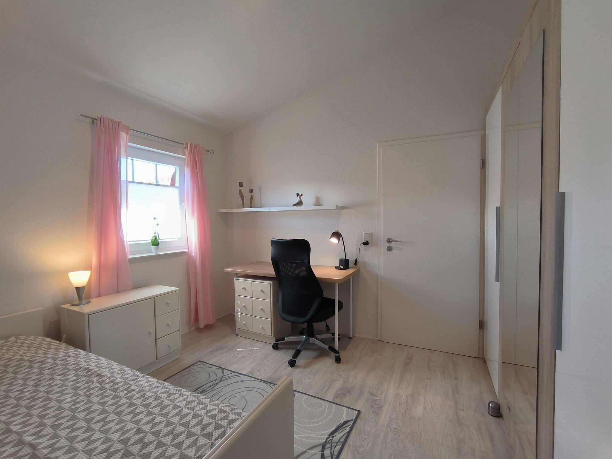 Bis zu drei Personen können sich in der Ferienwohnung Südertoft wohlfühlen: der große Wohn-, Küchen- und Essbereich ist hübsch eingerichtet und bestens ausgestattet. In der offenen Küche ist alles vorhanden, was man zum Zubereiten leckerer Urlaubsmahlzeiten benötigt (plus ein großer Gefrierschrank) und die Sofaecke mitsamt Lesesessel und Blick auf die Terrasse ist sehr gemütlich. Vom großen Wohnzimmer aus erreicht man zunächst das Schlafzimmer mit dem Einzelbett: es ist mit einem großen Kleiderschrank, dem Bett (0,90x2,00m), einem Nachtisch und einem Schreibtisch ausgestattet. Als Durchgangszimmer führt es in das Schlafzimmer mit Doppelbett (1,80x2,00m), das einen schönen Blick ins Grüne hat. Beide Schlafzimmer sind mit Plissees und Gardinen ausgestattet, die die Zimmer sehr gut verdunkeln. Das Badezimmer ist mit einer Dusche, WC, Waschbecken und Spiegelschrank ausgestattet und hat ein Fenster. Im Bad steht auch die Waschmaschine, die von den Gästen genutzt werden darf. Vor dem Eingangsbereich liegt die große Terrasse mit Gartentisch, Stühlen und einer Hollywoodschaukel: ein Sonnenschirm und ein kleiner Grill sind auch vorhanden. Der Garten, der das Mehrzweckgebäude umgibt, kann leider nicht mitgenutzt werden. Kleinkinder sind auch willkommen: vor Ort gibt es einen Kinderstuhl, ein Reisebett muss jedoch mitgebracht werden.