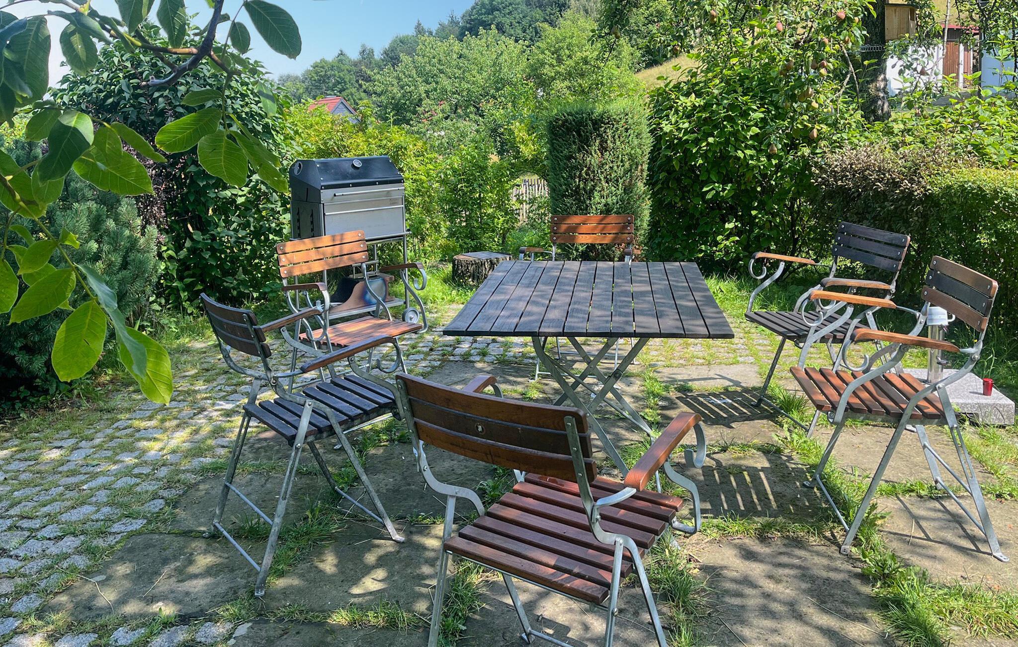 Lausche-Häusl er et rustikt, fredet Umgebindehaus fra forrige århundre. Det ligger nedenfor Lausche - det høyeste fjellet i Zittauer Gebirge - og byr på fred og ro og nærhet til naturen. Med åpen kjøkkenløsning og vedstue samt tre soverom er det plass til seks personer. Nyt utsikten opp Lausche-skråningen fra den avslappende solsengen eller nyt en kaffe i skyggen av et gammelt valnøttre - du kommer til å bli fornøyd!
