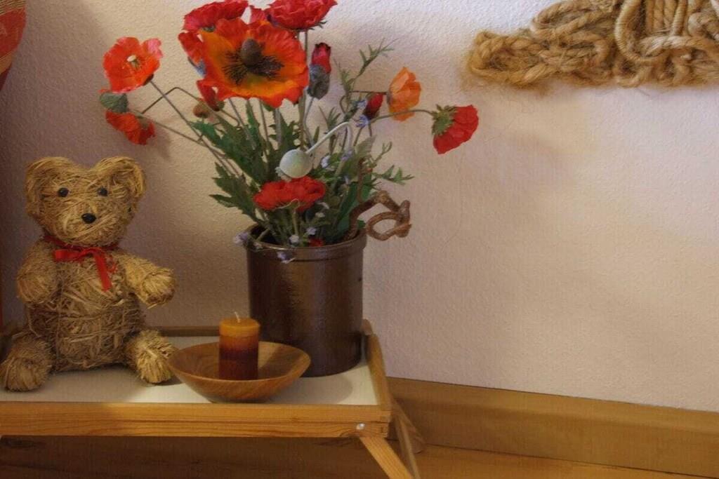 Nyt vår service og finn fred, avslapning og eventyr skreddersydd til dine feriebehov. Våre gjester kan forvente en kjærlig møblert ferieleilighet for 2 personer (også ideell for babyer/småbarn, med en ekstra seng tilgjengelig). Den inkluderer et soverom, en stue med flatskjerm-TV, et hi-fi-anlegg, en velutstyrt kjøkkenkrok og et bad med dagslys, dusjkabinett/WC og hårføner. Det finnes en annen ferieleilighet for 4 personer/2 soverom i huset! Fra ferieleiligheten kan du se ut over den store hagen med grill, sittegruppe og en liten lekeplass. Dine (barne)barn kan bli venner med katten vår. Vi tilbyr ferske råvarer fra gården, brødleveringstjeneste, Wi-Fi og frokost for en fullstendig hyggelig ferie.