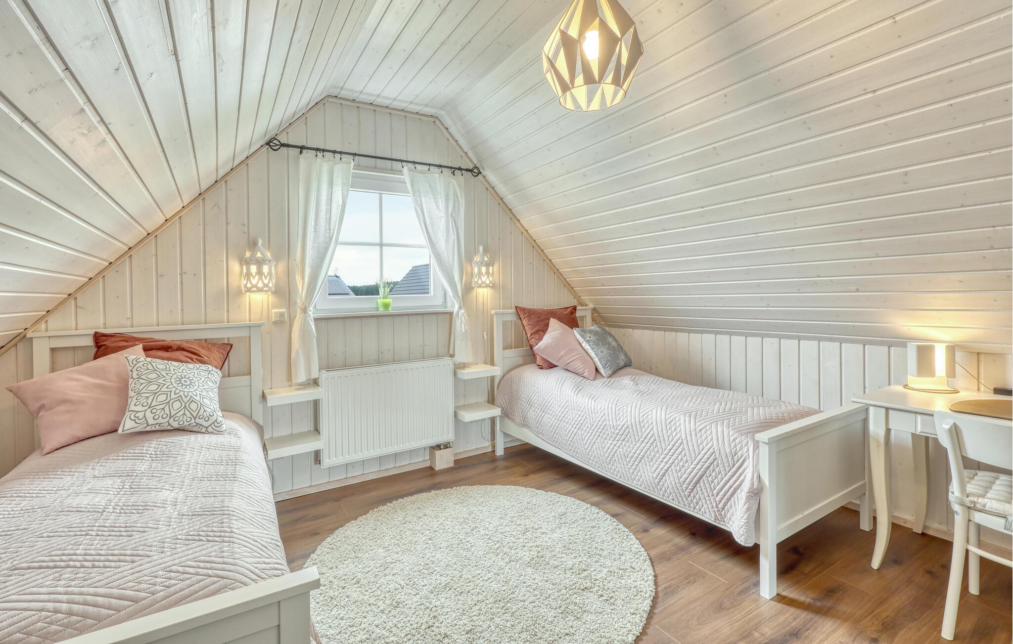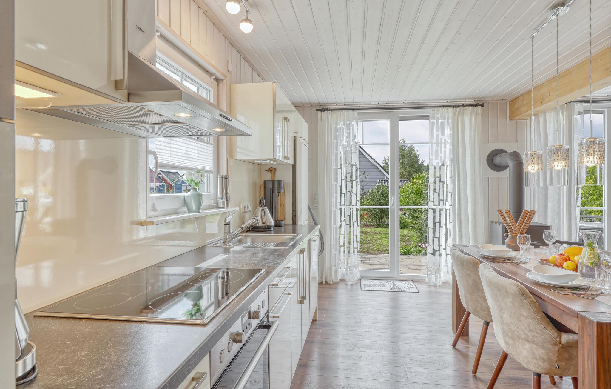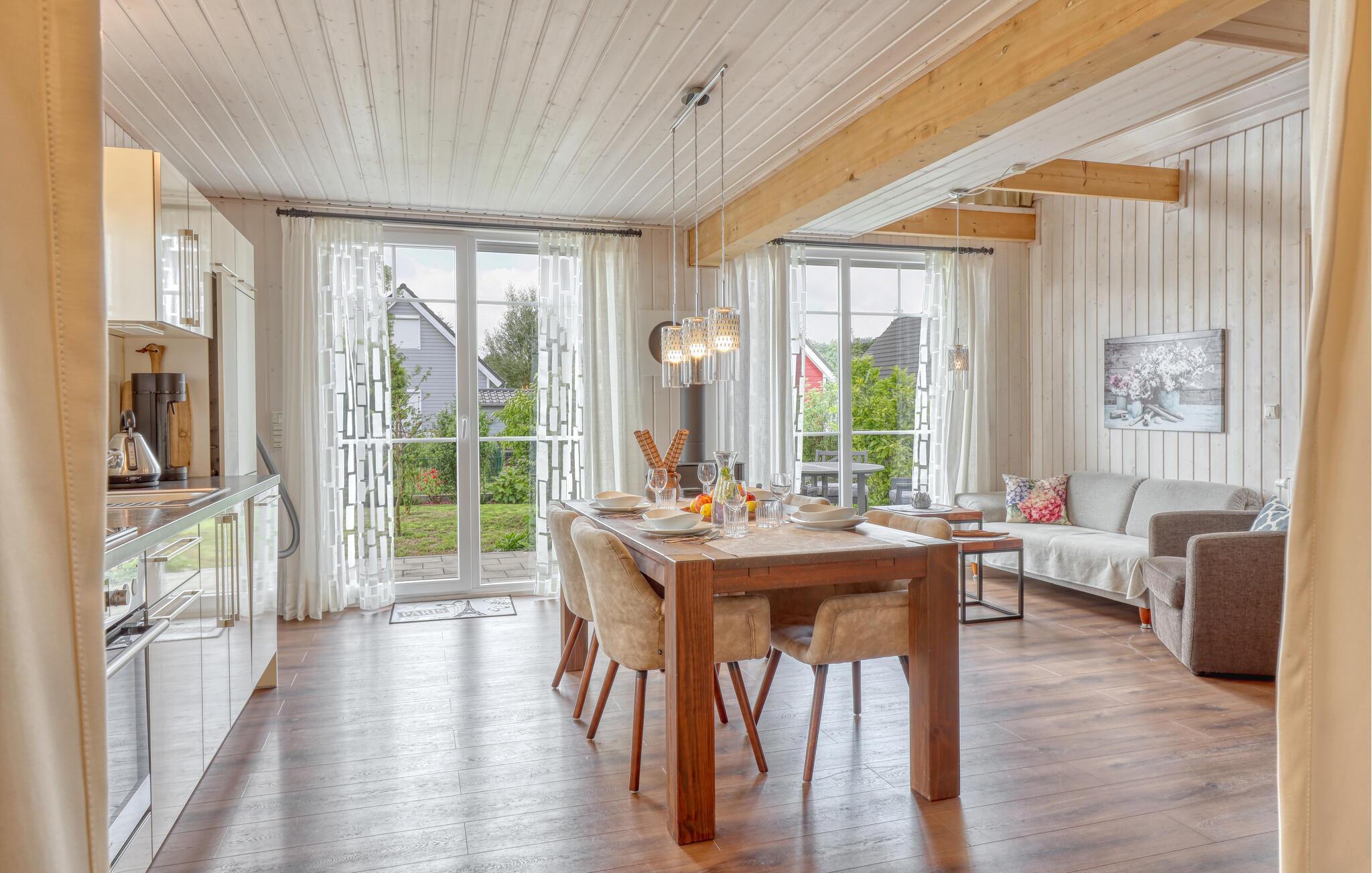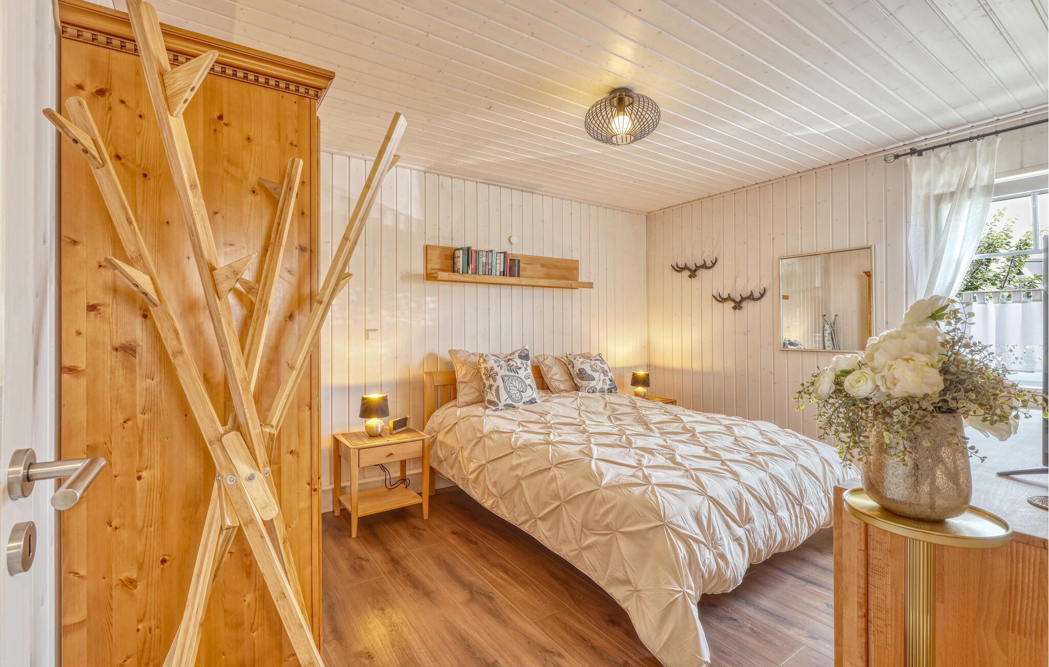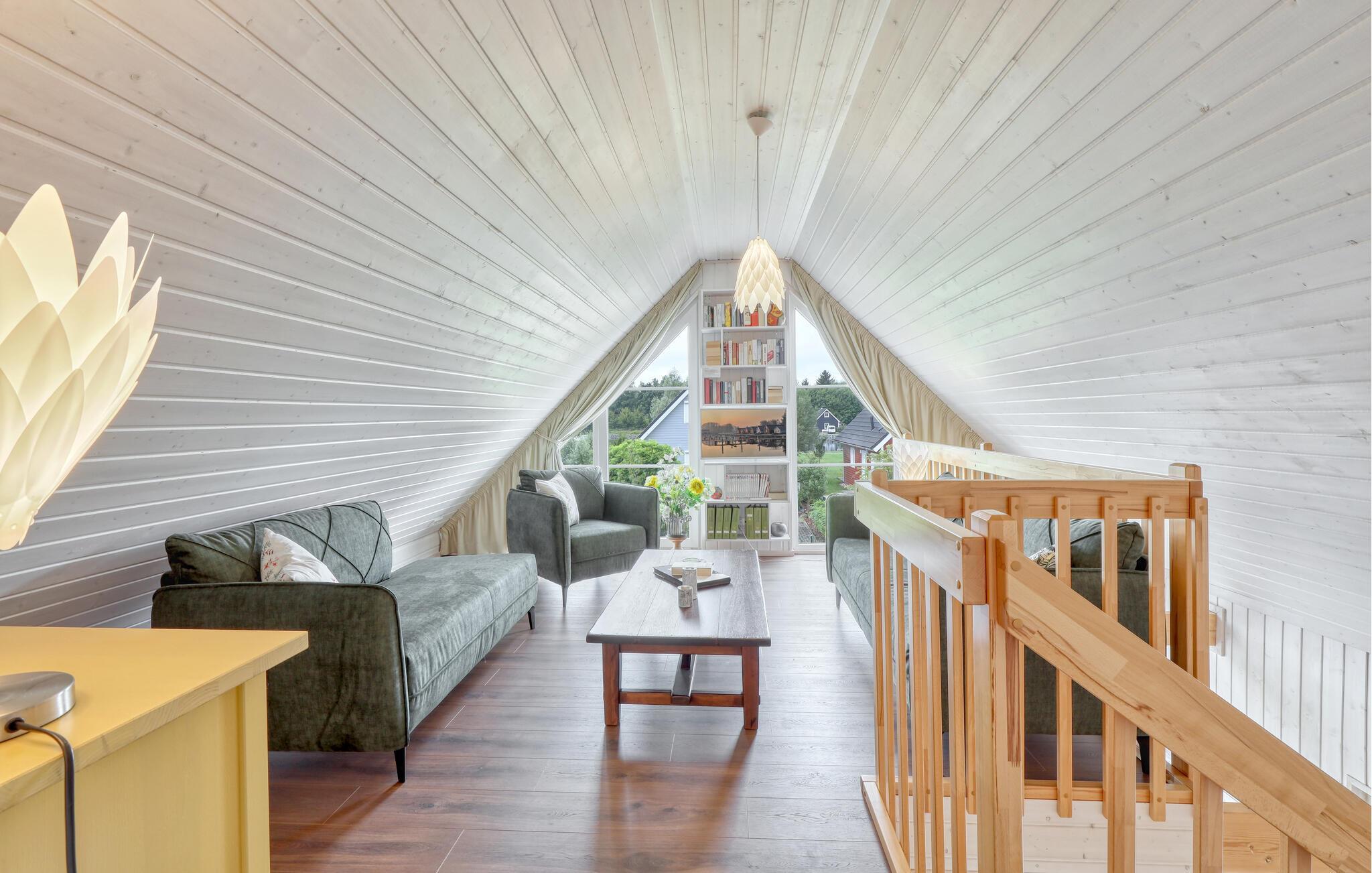 Bare noen få skritt fra naturen, tilbyr dette huset alt du trenger for en vellykket ferie med familien. Finn deg til rette i den koselige stuen. Den åpne planløsningen med lyst tretak, store vinduer og en vedovn skaper en koselig atmosfære når som helst på året. Bruk det store spisebordet til felles måltider, og lag dine favorittretter på det moderne kjøkkenet. Oppdag det sjarmerende lesehjørnet i øverste etasje, ideelt for rolige timer med utsikt over omgivelsene.