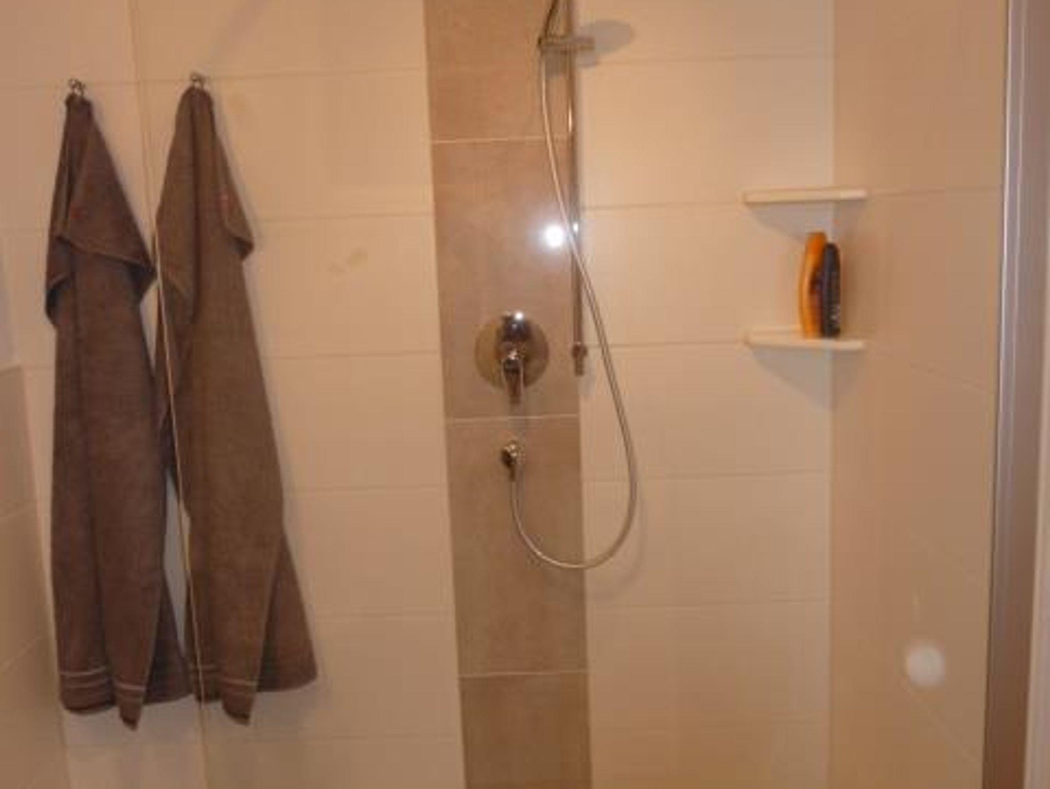 Die Ferienwohnung bietet ein separates großes Schlafzimmer mit Doppelbett. Der großzügige Wohnbereich verfügt über einen Essplatz für 4 Personen, eine Küche mit Induktionsherd, Backofen, Spülmaschine, Kühlschrank, Kaffemaschine und allen notwendigen Kochutensilien sowie einen gemütlichen Wohnbereich mit Schlafsofa, Couchtisch und TV. Das Badezimmer hat eine begehbare Dusche, WC und Waschbecken.