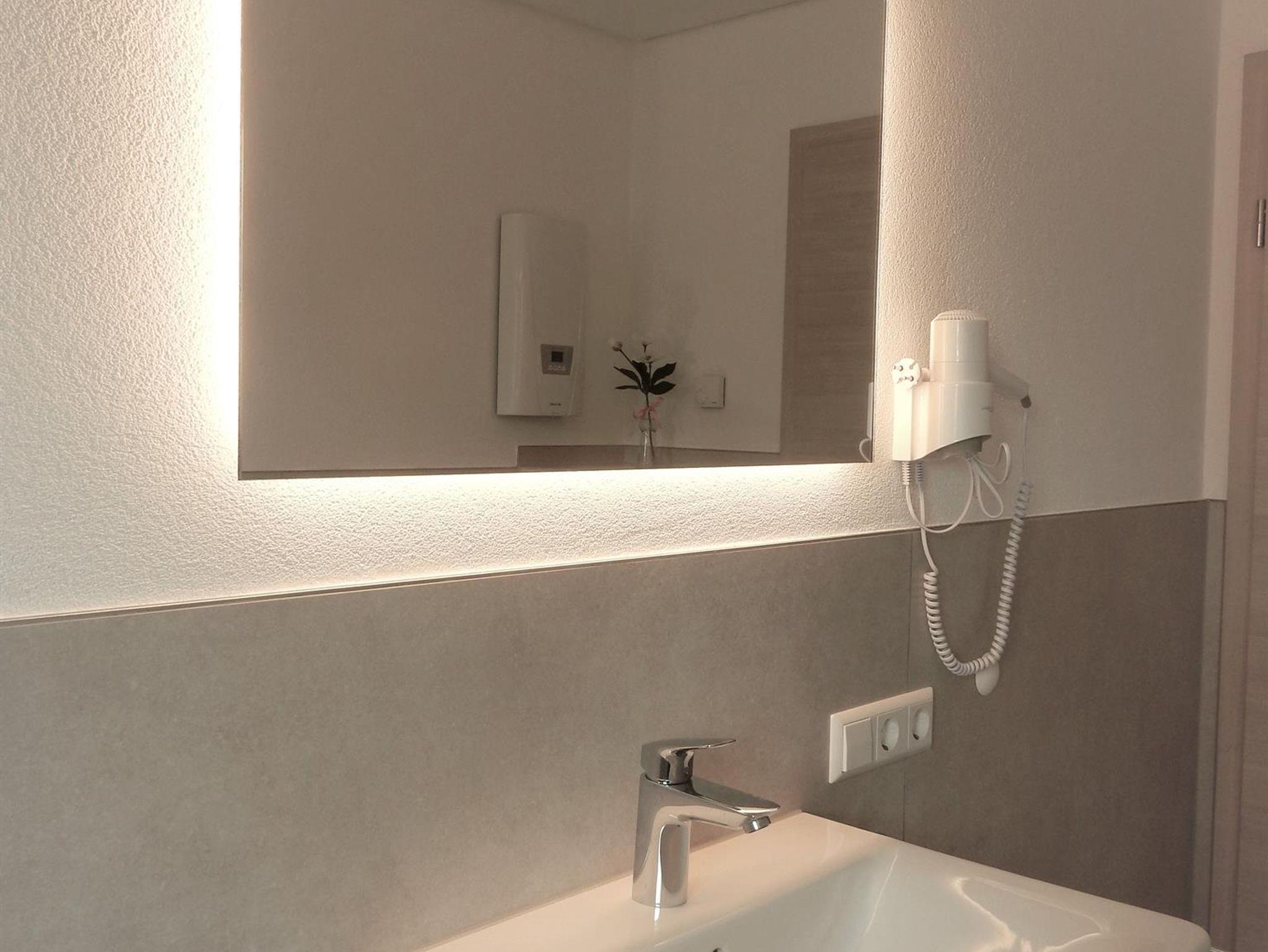Die moderne, ruhig gelegene Ferienwohnung verfügt über ein Wohnzimmer mit bequemen Schlafsofa (3. Schlafplatz), ein Schlafzimmer, eine Küche sowie einem neuen Bad mit Regendusche. Einzigartig ist der Blick auf den 1000 qm großen Garten. Ihren PKW, Ihr Motorrad o. Fahrrad parken Sie in einer großen abschließbaren Einzelgarage (im Mietpreis enthalten).