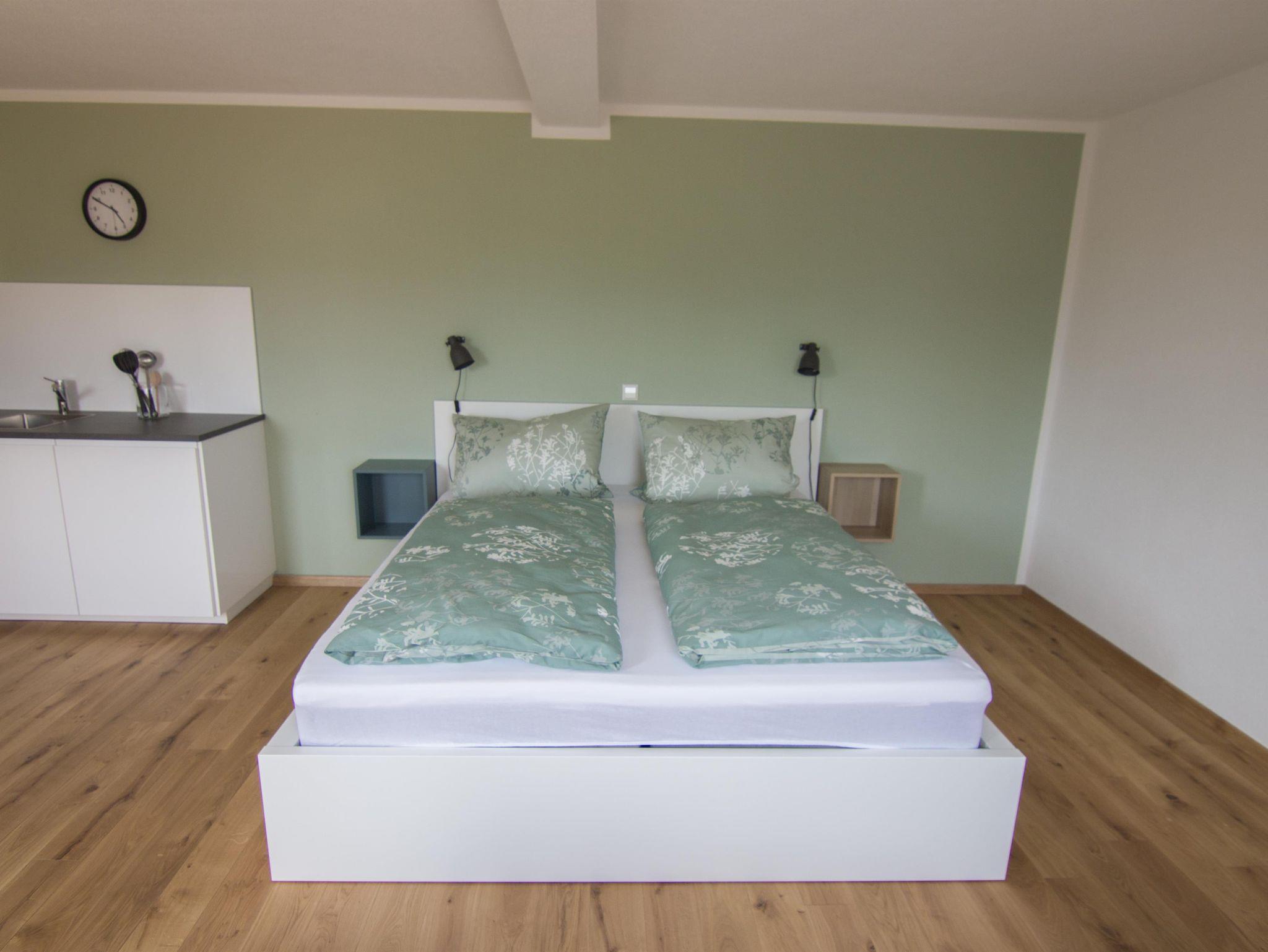 Das 30 m² große Studio Bertha ist hell, modern und sehr gemütlich eingerichtet. Es befindet sich im 1.OG, verfügt über ein separates Bad mit Dusche und WC, eine Miniküche, WLAN, Flat TV, Doppelbett, sowie einem Einzelbett.