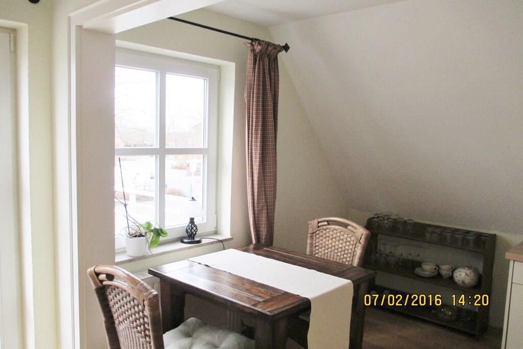 Diese Ferienwohnung befindet sich im Dachgeschoss unseres Ferienhauses im Kiebitzhörn, in einer ruhigen Seitenstraße nahe des Ortskernes von Horumersiel. Die Ferienwohnung ist hell und sonnig, komfortabel ausgestattet und mit viel Charme eingerichtet. Die Ferienwohnung verfügt über einen Balkon sowie einen Pkw-Stellplatz. Wir legen großen Wert darauf, dass sich auch Allergiker bei uns wohl fühlen. Daher ist das Mitbringen von Haustieren und das Rauchen in unseren Wohnungen nicht gestattet. Das Kurzentrum befindet sich in unmittelbarer Nähe, falls Sie Kurbehandlungen wahrnehmen möchten.
