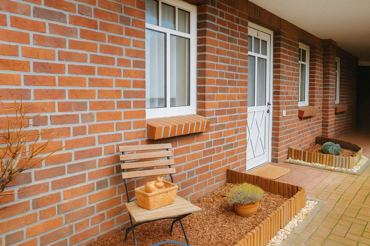 Zwei separate Schlafzimmer sorgen für erholsame Nächte: eines mit komfortablem Doppelbett, das zweite mit einem 1,40 × 2,00 m großen Doppelbett. Das tageslichthelle Badezimmer mit Dusche und WC rundet den modernen Wohnkomfort ab. Küche, Flur und Bad sind gefliest, während Teppich in den Wohn- und Schlafbereichen eine warme, behagliche Atmosphäre schafft. Ein eigener Parkplatz direkt am Haus macht die Anreise besonders bequem.
