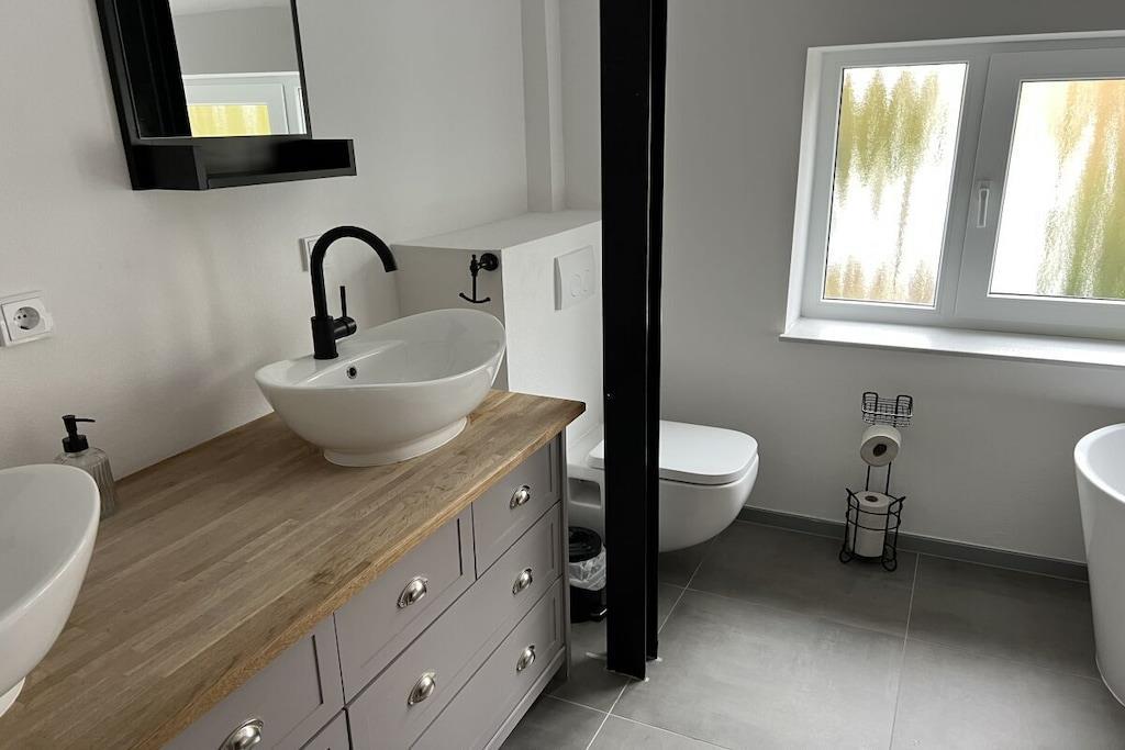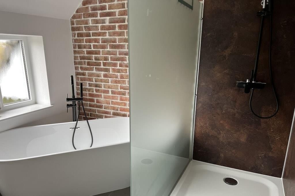 Experience unforgettable days in the "Holiday Apartment 53° North - Deichblick." This tastefully furnished accommodation offers you the highest level of comfort and a wide range of amenities in a spacious space. Four cozy bedrooms, each equipped with a 180x200cm bed, as well as an additional large bedroom with a 180x200cm bed and four single beds, ensure restful nights and plenty of space for family and friends. In the stylish bathroom, you can choose between a shower and a bathtub, while a modern guest toilet with a shower offers additional comfort. The high-quality kitchen with a cooking island invites you to cook and enjoy meals together – ideal for socializing. Even our younger guests have been thought of: high chairs and baby cots are available to make your stay unforgettable even for the youngest ones. For your mobility, three parking spaces are available directly at the house. Afterwards, relax on the sunny terrace, which invites you to linger and unwind, or treat yourself to a break in the in-house sauna. The spa facilities and beautiful beaches are within easy reach, and those looking for that special something can even book a hot tub.