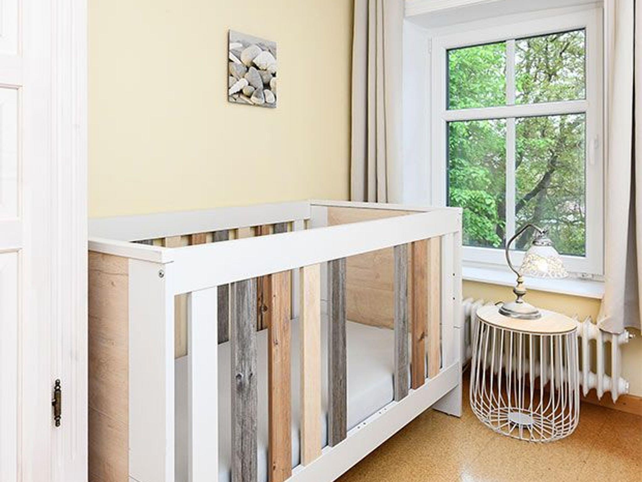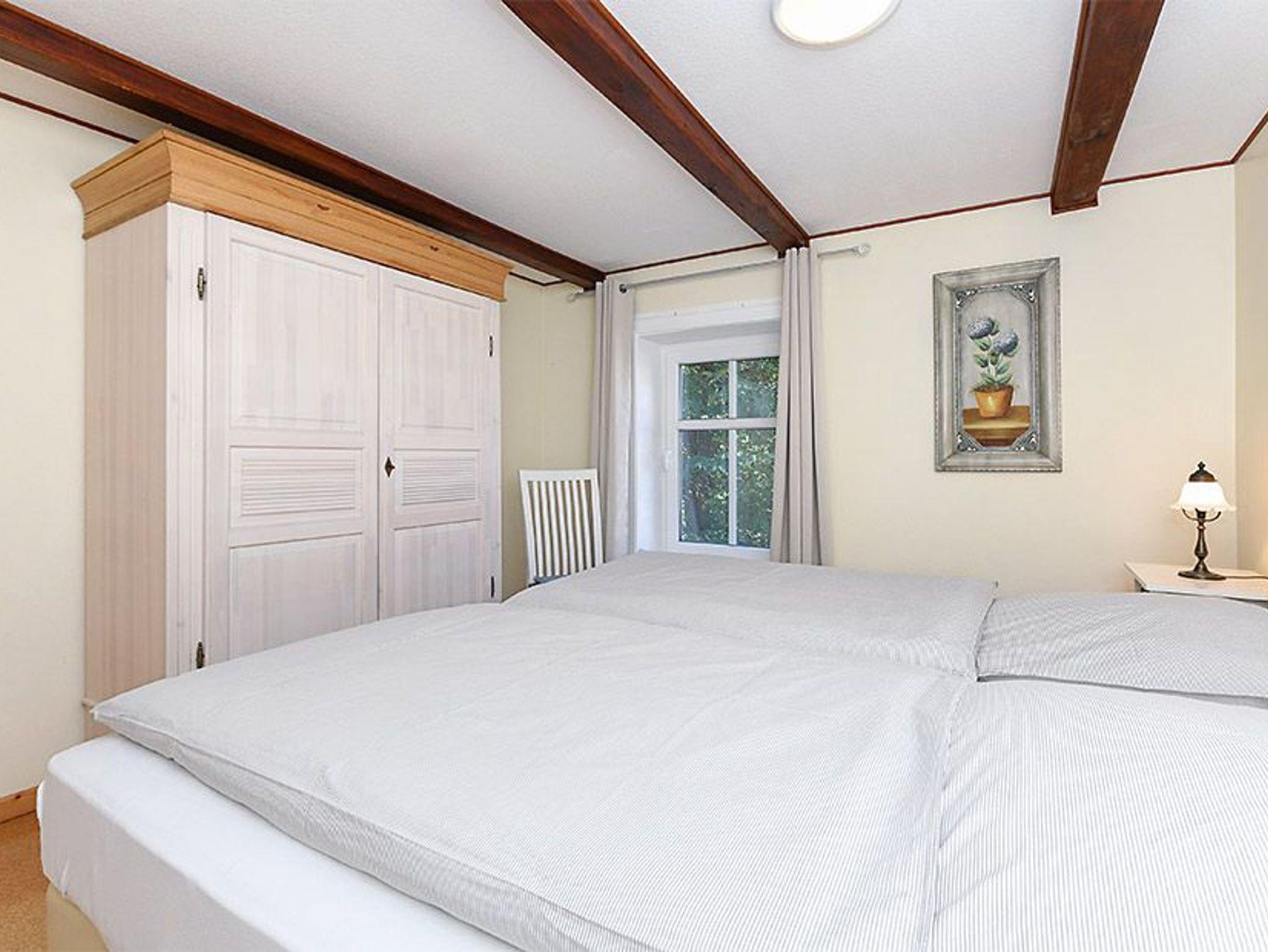 Größe ca. 60 Quadratmeter, Wohnraum mit integrierter Küche, Schlafzimmer, zweites separates Schlafzimmer/Kinderzimmer, Badezimmer mit Dusche, Waschtisch und WC, Obergeschoss, optimal für 2 bis 4 Personen.