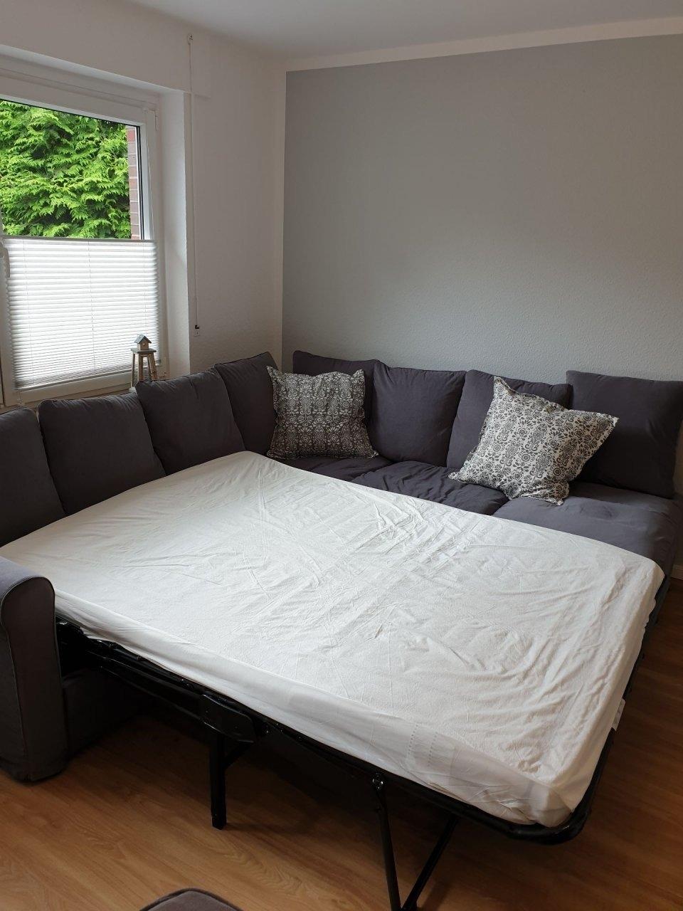 Ein Video von der Wohnung finden Sie unter folgendem Link: https://www.youtube.com/watch?v=RqB_KrCsjssDie moderne Ferienwohnung mit einer Wohnfläche von ca. 97 m², für max. 8 Personen liegt im Erdgeschoss eines Zweifamilienhauses in einer Sackgasse. Sie liegt nur wenige Minuten vom Meer, Strand, Hafen, Einkaufsmöglichkeiten und Schwimmbad entfernt. Sie verfügt über 3 Schlafzimmer die wie folgt aufgeteilt sind: Ein großes Elternschlafzimmer mit einem Boxspringbett 180x200 cm Bett und einem Kinderbett. Das zweite Schlafzimmer hat ein 160x200 cm großes Bett und das dritte Schlafzimmer hat ein Ausziehbett das sich von 90x200 auf 180x200 auf einer zweiten Ebene erweitern lässt. Im Wohnzimmer befindet sich zusätzlich ein Schlafsofa 140x200 cm, welches für zwei weitere Personen eine Schlafmöglichkeit bietet. Die Küche ist von dem großen Wohnzimmer abgetrennt. Es ist ein Gäste-WC und ein Badezimmer mit Dusche und Badewanne vorhanden. Im Abstellraum finden Sie eine Waschmaschine. Zwei Terrassen laden zum Sonnenbaden oder gemütlichen Beisammensein zu jeder Tageszeit ein. An unsere kleinen Feriengäste haben wir auch gedacht. Die Steckdosen haben einen erhöhtem Berührungsschutz. Spiele, Bücher, Spielzeug und eine Kinderküche sind vorhanden.Mit Rücksicht auf die nicht rauchenden Feriengäste und Allergiker haben wir die Ferienwohnung zur "rauchfreien und tierfreien Zone" erklärt. Selbstverständlich ist das Rauchen auf den beiden Terrassen gestattet. Die Ferienwohnung liegt in einer Sackgasse, dort finden Sie auch Ihren Parkplatz für Ihr Auto. Ebenso gibt es eine abschließbaren Garage wo Sie z.B. Ihre Fahrräder unterbringen können.