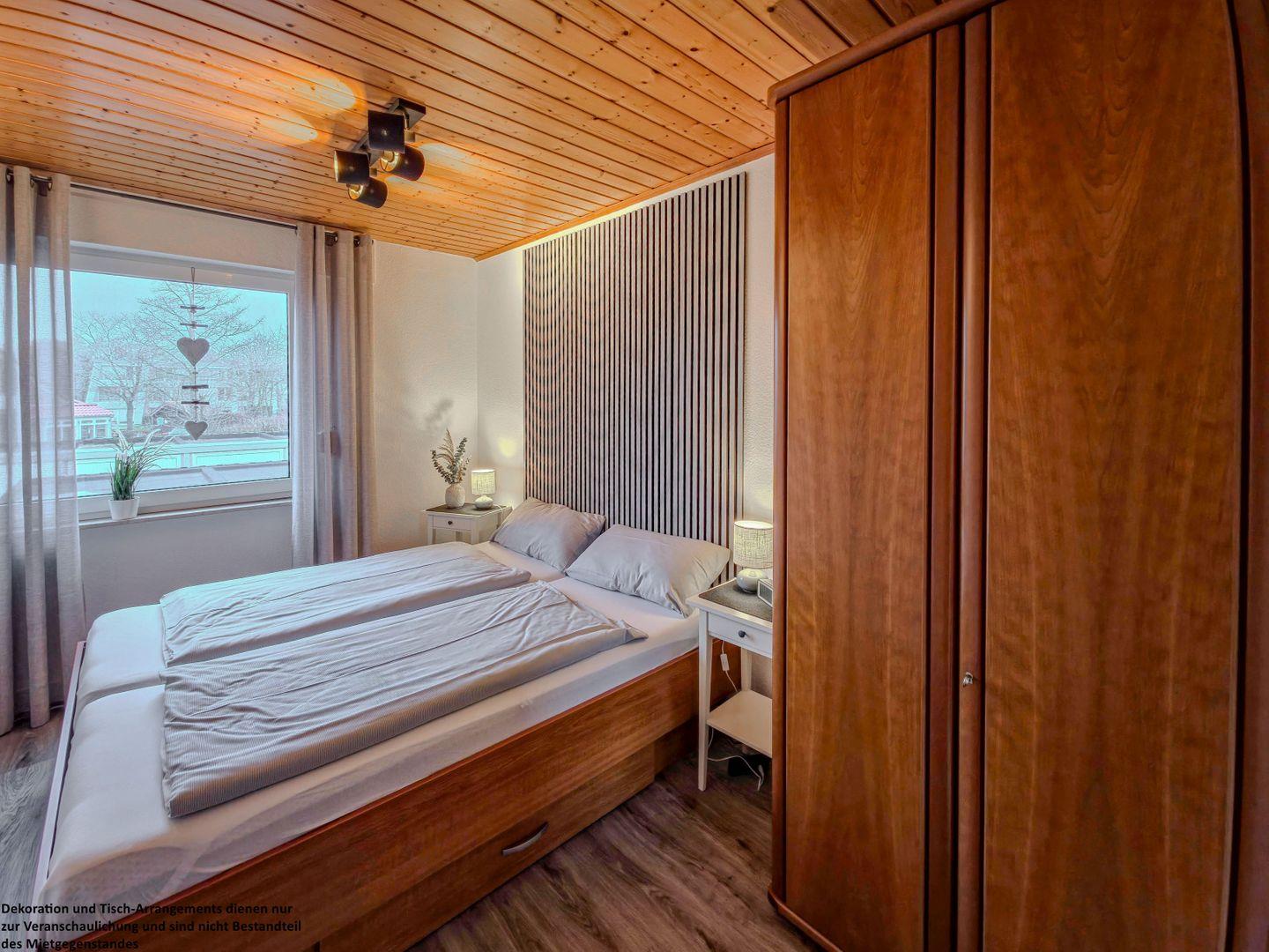 Das erste Schlafzimmer ist mit einem bequemen Doppelbett (2x 90x200Matratzen) und einem großzügigen Kleiderschrank ausgestattet.