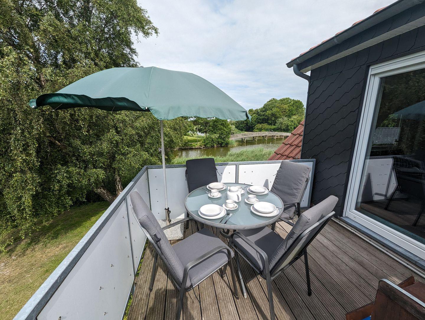 Genießen Sie traumhafte Stunden auf dem großen Balkon im Strandkorb oder an den gemütlichen Gartenmöbeln mit Blick auf den Kolk – ein perfekter Ort, um die Seele baumeln zu lassen.