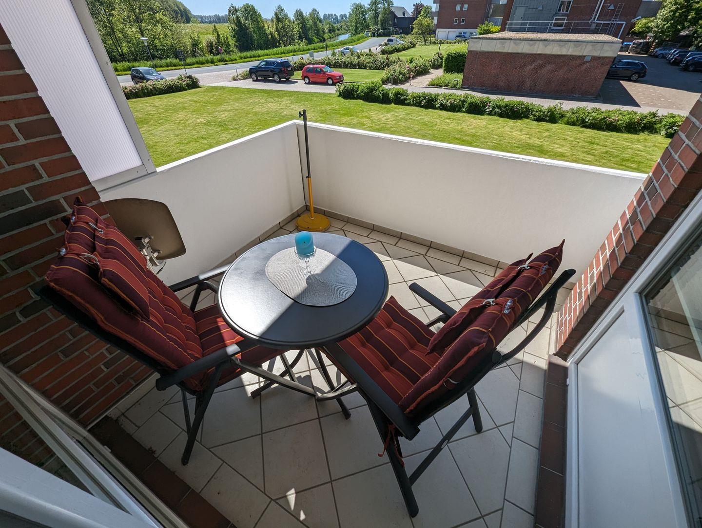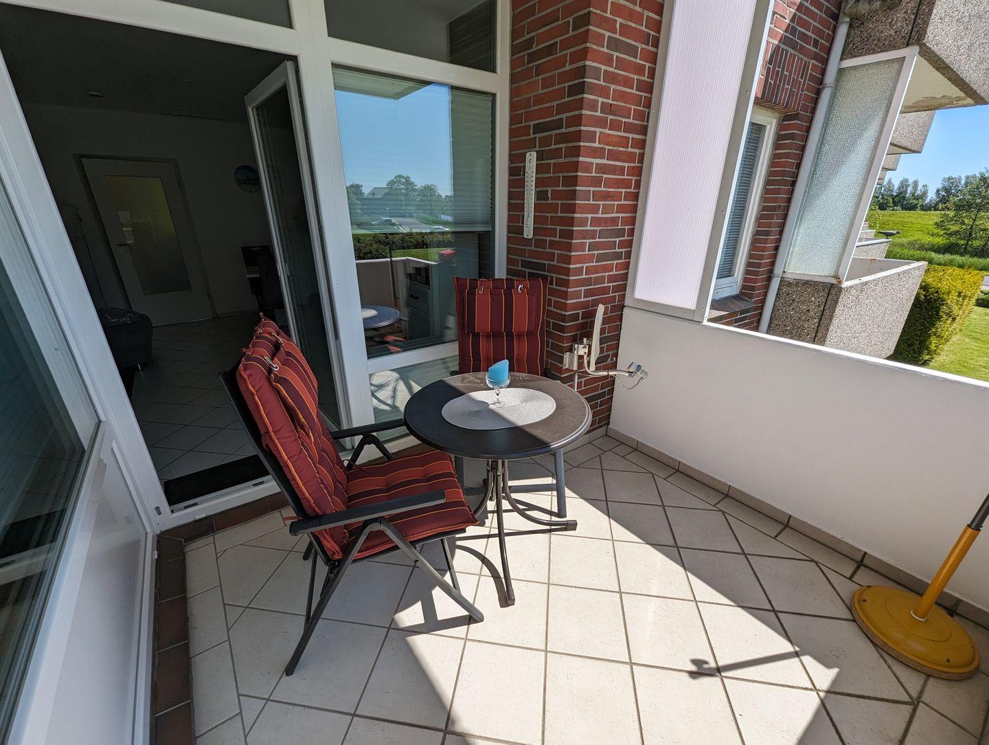 Genießen Sie die warmen Sonnenstrahlen auf dem schönen Balkon und lassen Sie sich von der gemütlichen Atmosphäre verzaubern."