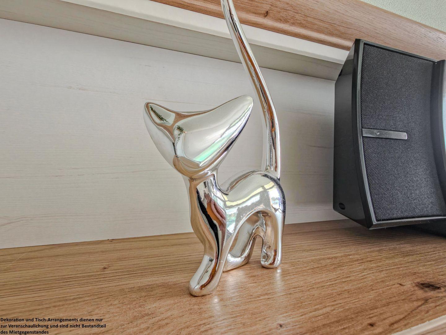 Die modernen Möbel verbinden Stil und Gemütlichkeit auf harmonische Weise. Im geräumigen Wohnzimmer finden Sie eine komfortable Sofaecke sowie eine Essgarnitur für gesellige Abende. Das Doppelbett (160x200) im Wohnzimmer ermöglicht einen Blick ins Grüne und führt direkt auf den angrenzenden Balkon, der tagsüber in warmem Licht erstrahlt.Ein Fliegengitter an der balkontür bietet ausreichend Schutz