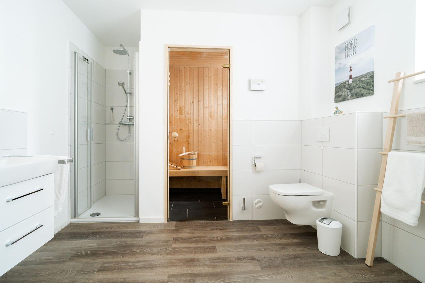 Die "Deichperle" begeistert mit einer luxuriösen Ausstattung und einer einladenden Atmosphäre. Die großzügigen Räume laden dazu ein, sich rundum wohlzufühlen. Im Wohnbereich schafft ein Elektrokamin eine behagliche Wärme und sorgt für romantische Abende. Lehnt Euch entspannt auf dem Sofa zurück und profitiert von dem vielfältigen Entertainmentangebot. Die Küche ist vollständig ausgestattet und lässt kulinarische Herzen höherschlagen: Vom Herd mit Backofen über eine Spülmaschine bis hin zur Espressomaschine. Hier lassen sich gemeinsam köstliche Gerichte zaubern. Der Essbereich eignet sich hervorragend für lange Frühstücke und gesellige Abende. In den Schlafzimmern erwarten Euch bequeme Betten und geräumige Kleiderschränke, die Komfort und Platz bieten. Das Badezimmer mit privater Sauna rundet das Wohlfühlambiente perfekt ab.