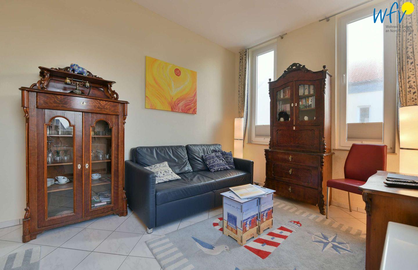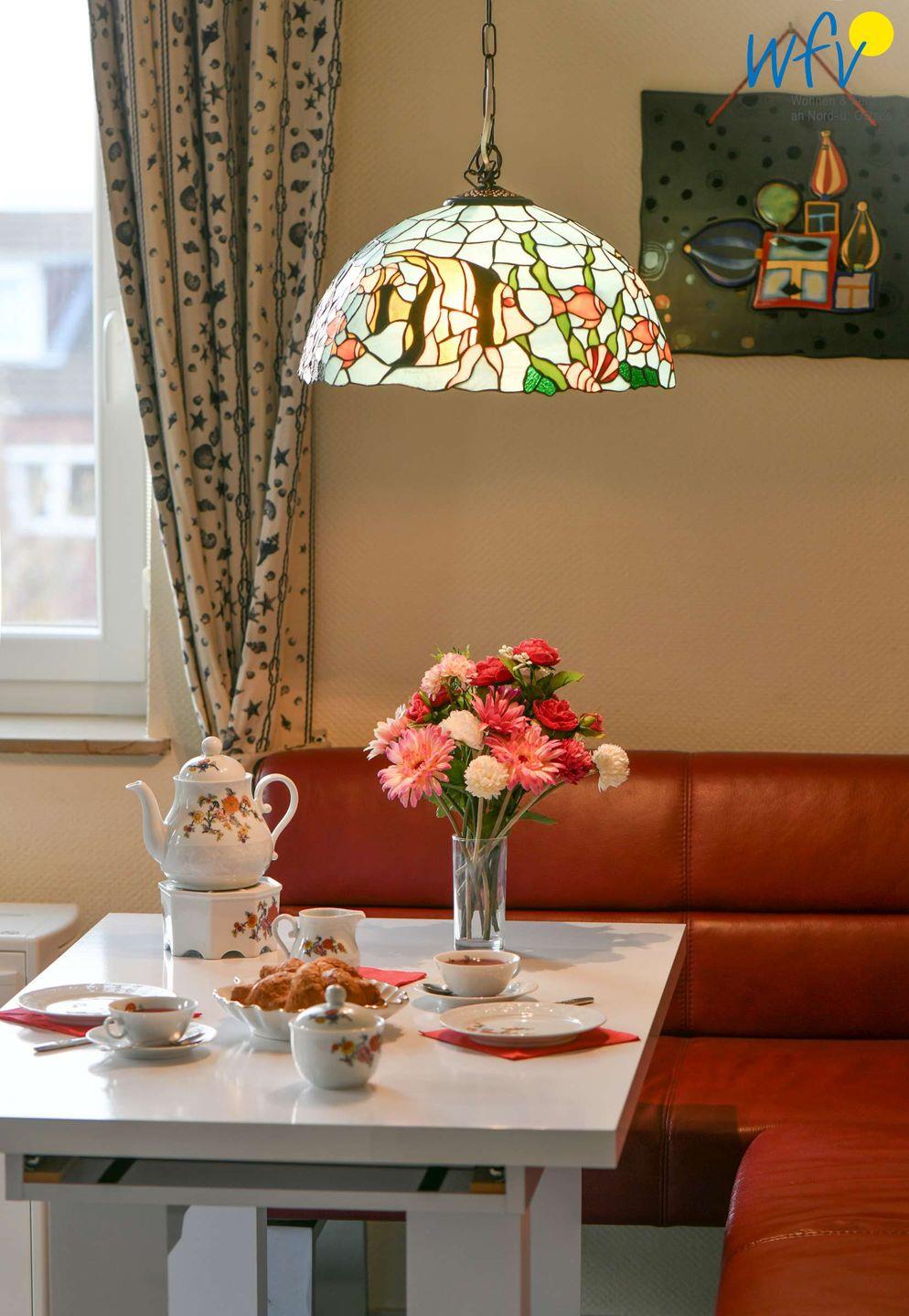 Ein schöner Lichteinfall, eine geschmackvolle Einrichtung und liebevolle Accessoires verleihen der Ferienwohnung eine freundliche Atmosphäre. Durch ihre Ost-/Südlage ist sie besonders hell und sonnig. Ein Highlight ist außerdem die gute Aussicht: Sie können sowohl auf die Nordsee schauen (seitlich), als auch auf das Watt und den Alten Leuchtturm.