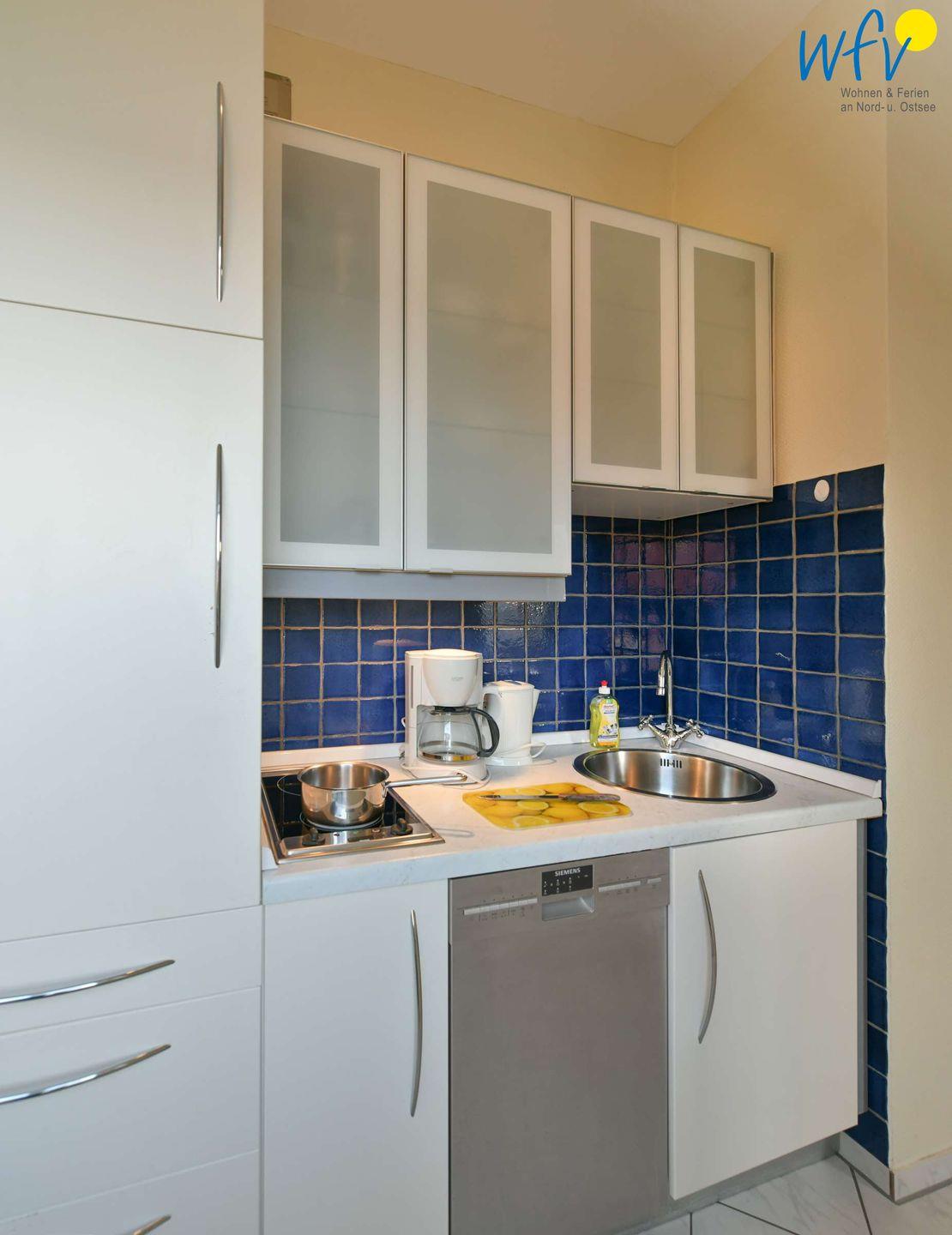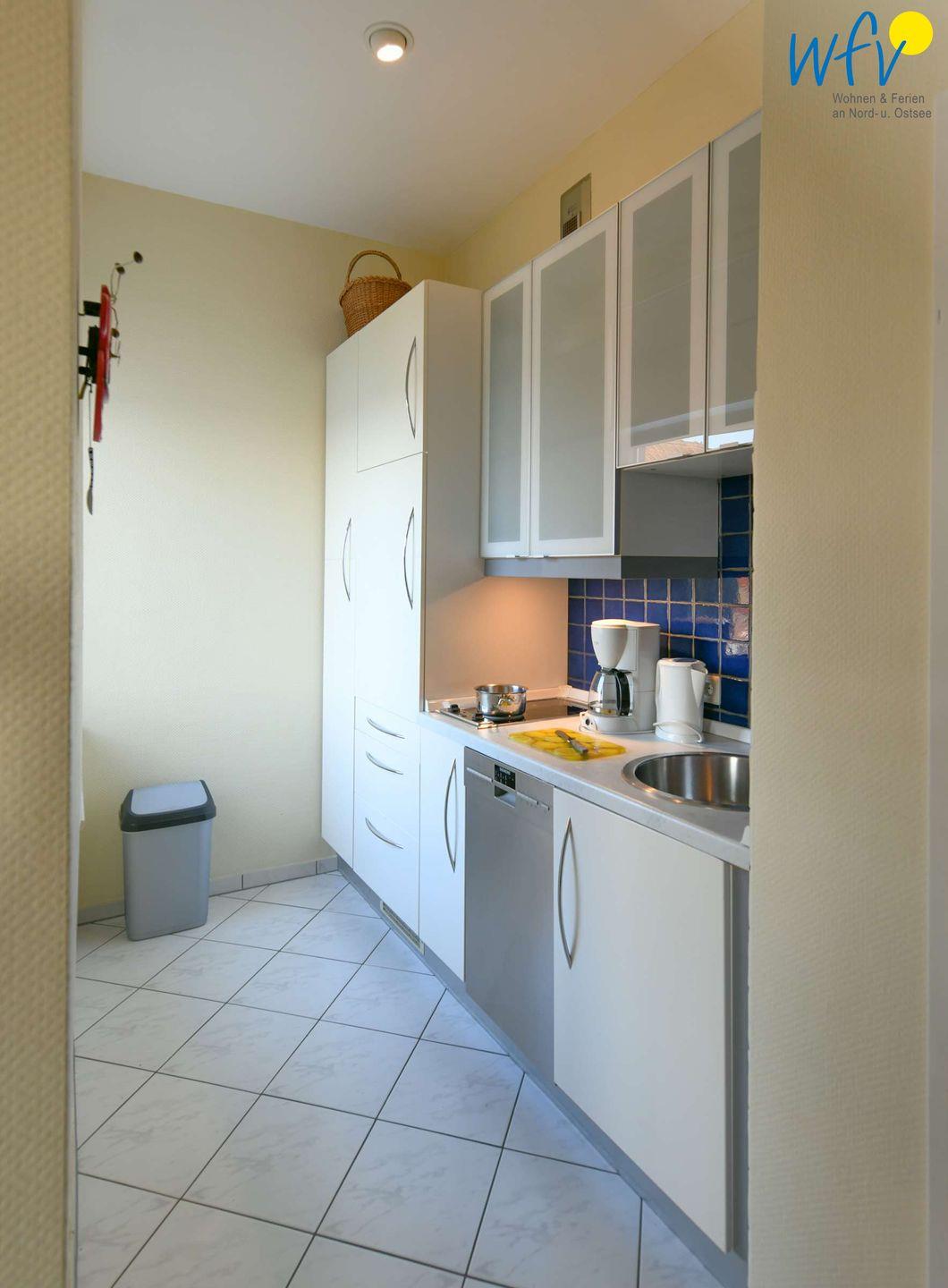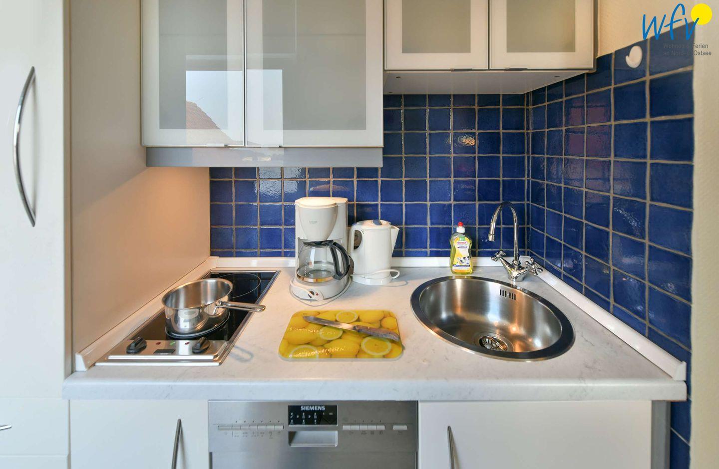 Für eine bequeme Selbstverpflegung verfügt die moderne Küchenzeile u.a. über zwei Kochfelder, einen Kühlschrank und eine Spülmaschine. Gemeinsame Mahlzeiten können Sie in der schönen Essecke einnehmen. Hier ist auch genügend Platz für gemeinsame Spieleabende.