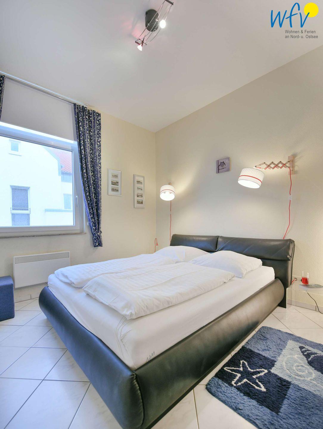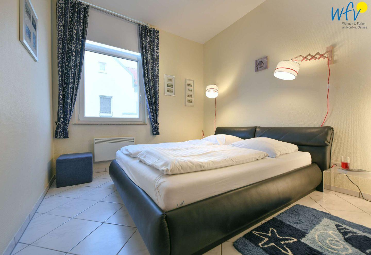 In dem separaten Schlafzimmer befinden sich ein geräumiger Kleiderschrank und ein komfortables Doppelbett mit zwei einzelnen Schlaraffia-Matratzen, die jeweils 80 cm Breite und 200 cm Länge haben.